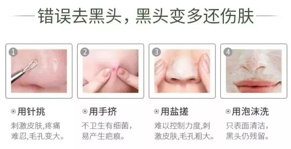 用针挑或用手挤黑头的做法也不可取,如若消毒不严格、手法不恰当,会增加感染的风险;