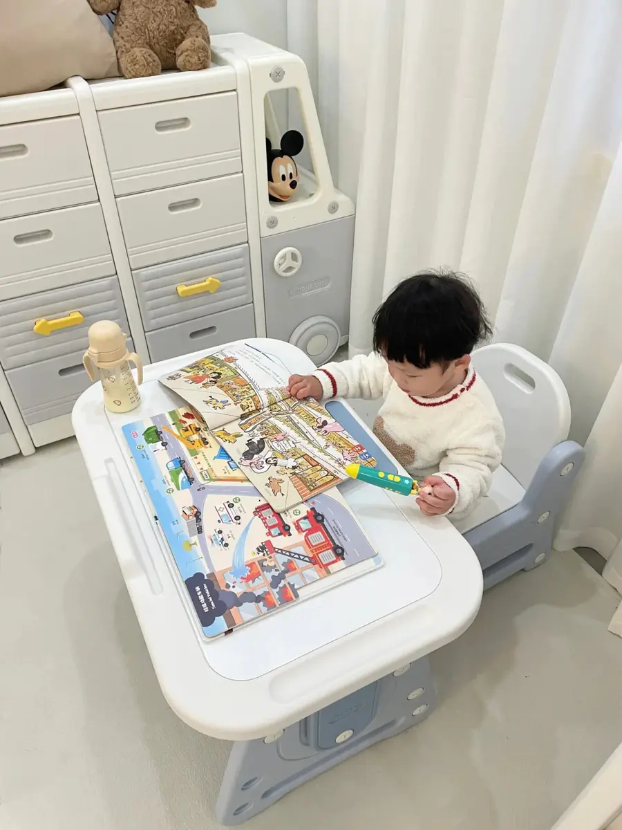 一桌多用,180度平放可以来学习和画画,真的太香了~看书、画画、喝neinei都要坐在那~