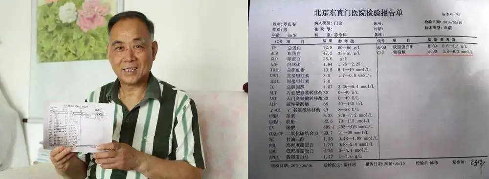 结果用了不到半个月,亲身的感受特别明显,每天测量血糖都在往下降,口干口苦、头晕胸闷的状况减轻了不少,眼前明显亮堂了。后来空腹血糖5.0,餐后1小时7.2,2小时6.5,完全正常,视力1.0,比没得病的时候看的还清楚,血压也不高,完全跟没得病时候一样,想吃就吃,想喝就喝,跟换了个人似的。