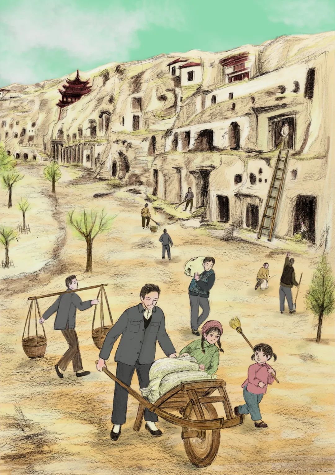 这也是一本有时代纵深感的书,它从欣洁失去妈妈的抗战时期写起,一直写到中国人民解放军接管敦煌。它写欣洁一家坐着敞篷卡车,一路颠簸从成都来到敦煌,作品对沿途自然风貌和人情民俗的多彩变化都有生动描写。它写欣洁一家在敦煌的小土屋里安家,既有时代地域特色又有家庭的温馨和暖阳。它写一个小女孩如何从对莫高窟的一无所知到逐渐认知、理解再到热爱的成长历程,充分表现了敦煌人一开始就具有的积极上进的理想和精神。同时作者也力图通过这样一个故事告诉我们,一个孩子是怎样认识并理解敦煌的。