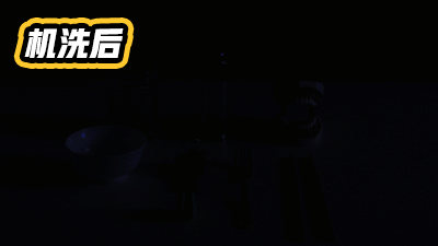清洗后用蓝光照射,机洗餐具无荧光剂反应。