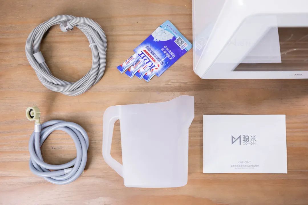 每台机器赠送配件如下:进水管*1、出水管*1、洗碗粉1包(10条)、加水杯*1、说明书*1。