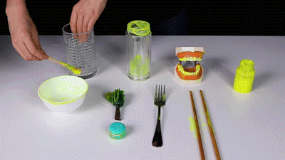 像假牙、水杯这类凹凸死角偏多的物体,用洗碗机清洗后表面都相当干净。