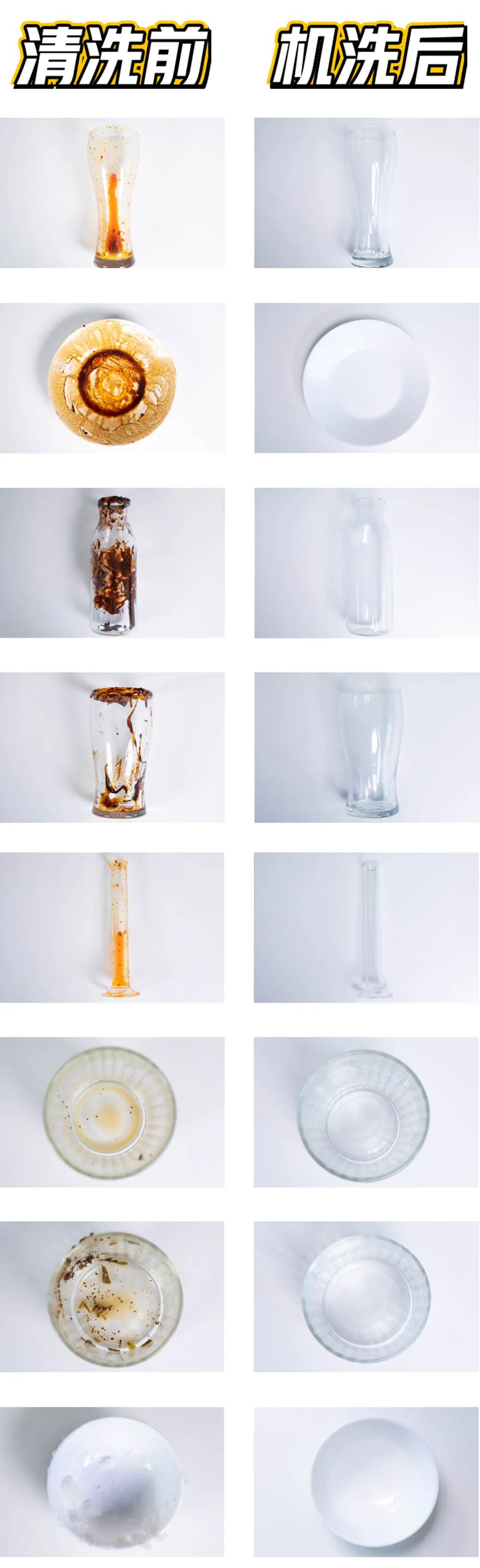 杯口、瓶底、试管深处全都干净,碗口也无米饭残留,