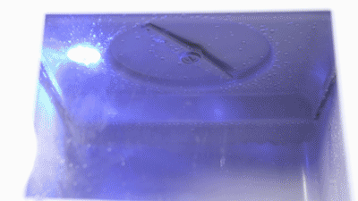 清洗后用蓝光照射,