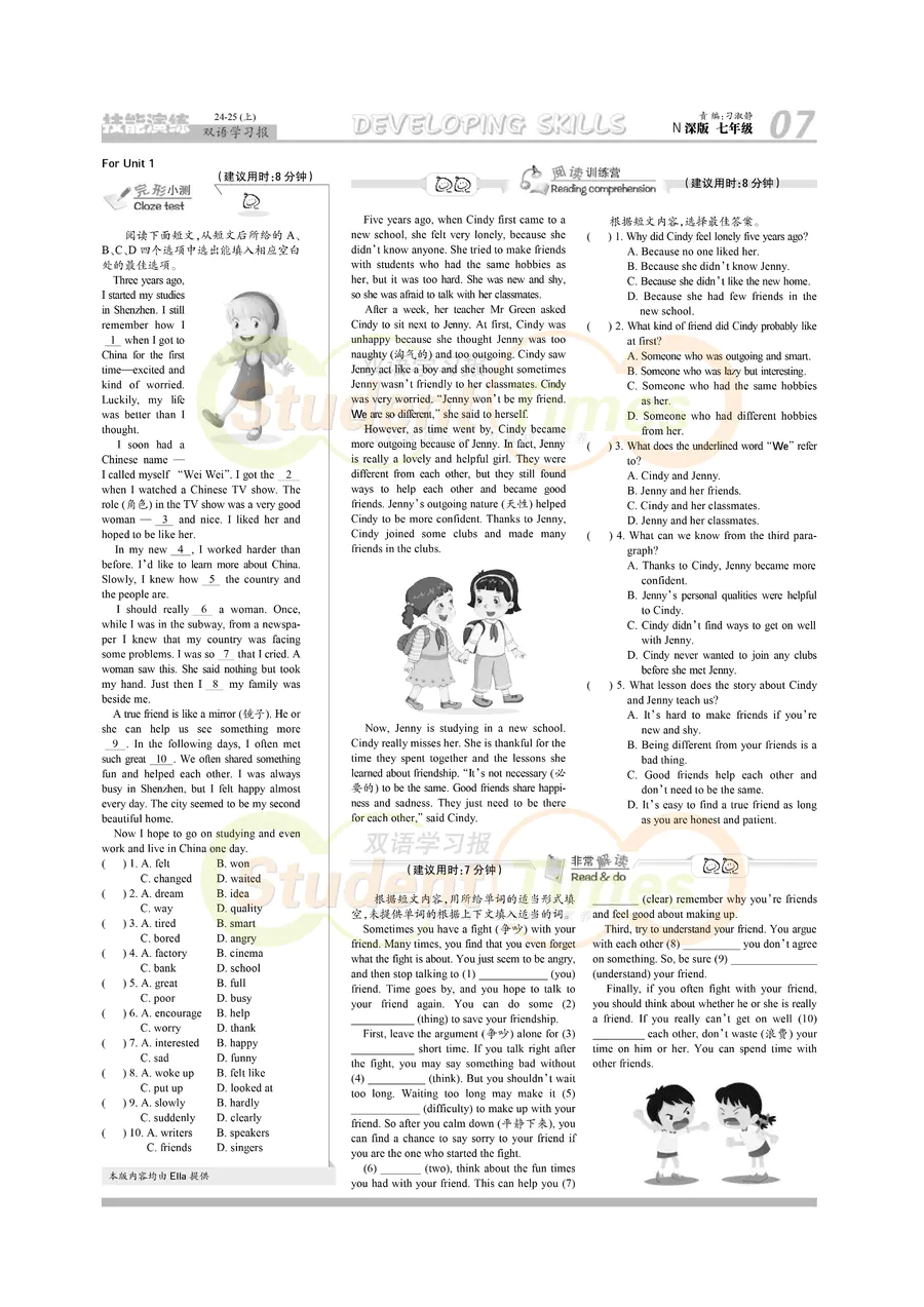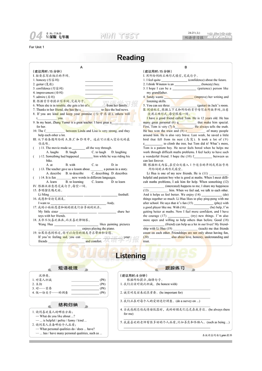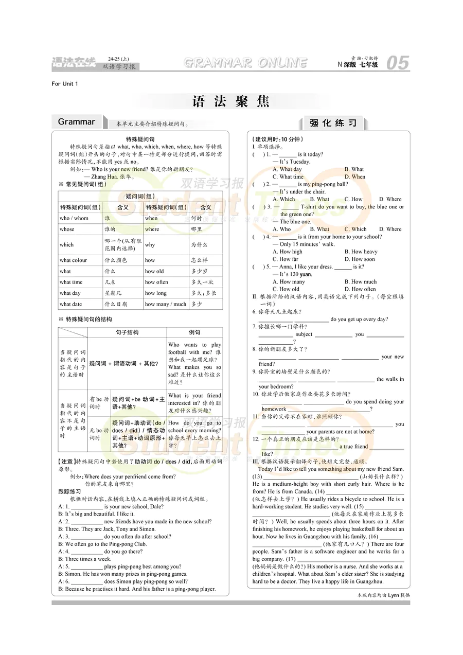 初中英语样报 七年级 N深版教材学习合刊