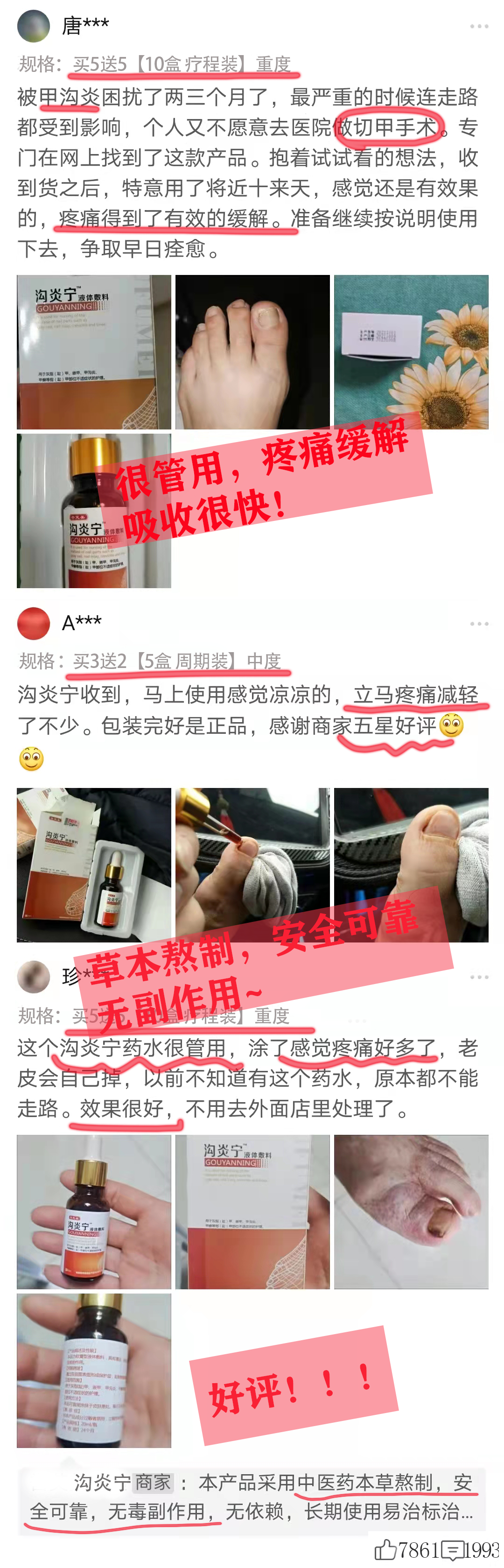 @福建孟女士:灰甲引发了大脚趾的甲沟炎,每天都痛的不行。医生给我推荐了誉芙美甲沟修复液,用了一星期灰指甲、甲沟炎都离我而去了!