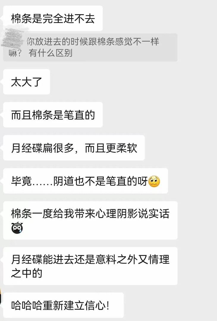 杏酱有个朋友没有过纳入式X经验,曾经尝试过棉条但失败了,无法放入,谁知道第一次用月经碟竟然就成功丝滑放入了!