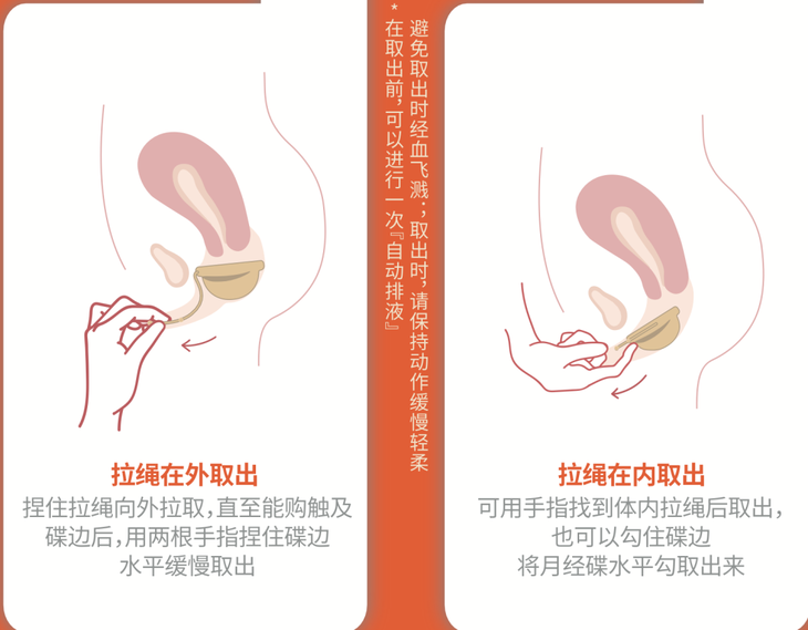 取出月经碟时可能会有一点Y道口扩张的感觉,但相信我只要动作轻柔,一定不会是疼痛感。