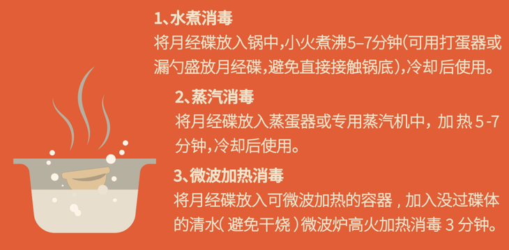 整个月经期结束后,高温蒸煮5-7分钟就可以杀灭细菌啦。