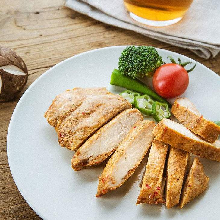 【午餐】鸡蛋1个和腌制过的鸡胸肉200克用8克橄榄油炒熟。