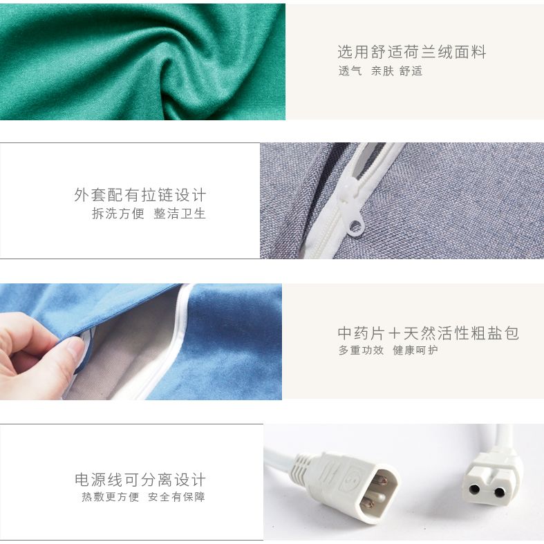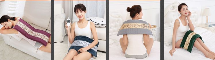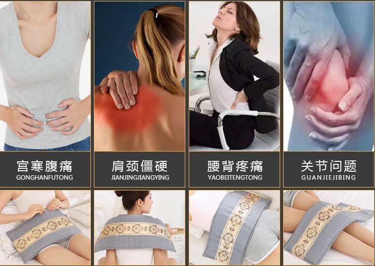 敷于身体的腰部、膝部、肩部,腹部等部位,能起到保健理疗作用,加快血液循环,缓解疲劳;