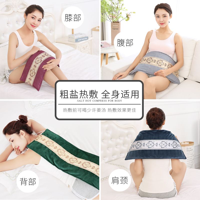 盐加热之后热敷在人体的穴位和肌肉上,可以将热温渗透体内,还能加速血液循环,缓解妇科、骨刺、肩周炎、颈椎病、椎间盘突出、风湿病等引起的酸、胀、痛。