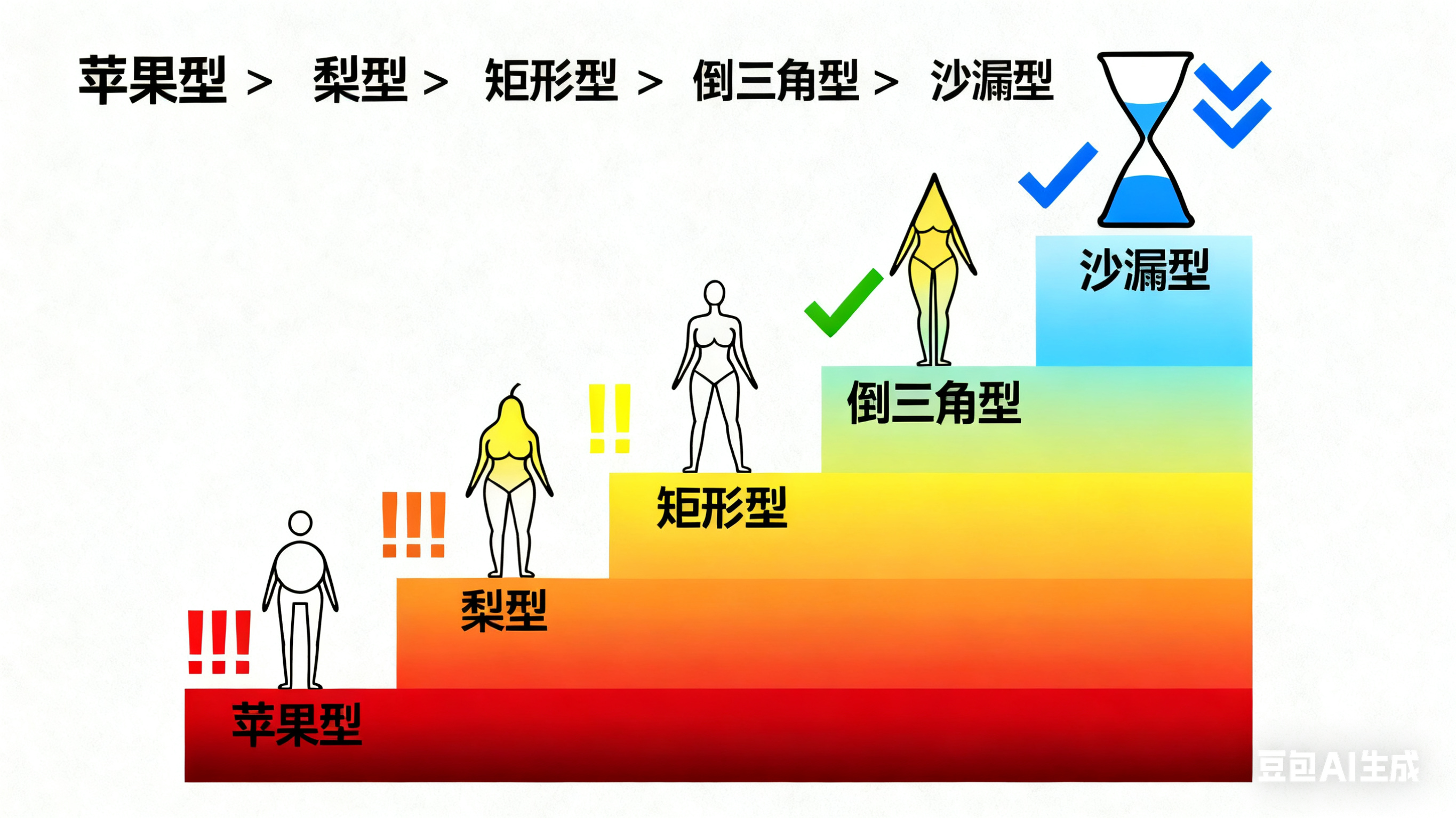 苹果型 > 梨型 > H型 > 倒三角型 > 沙漏型