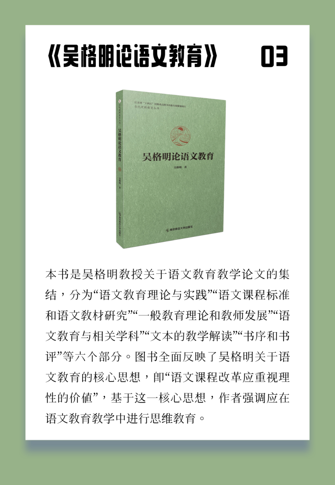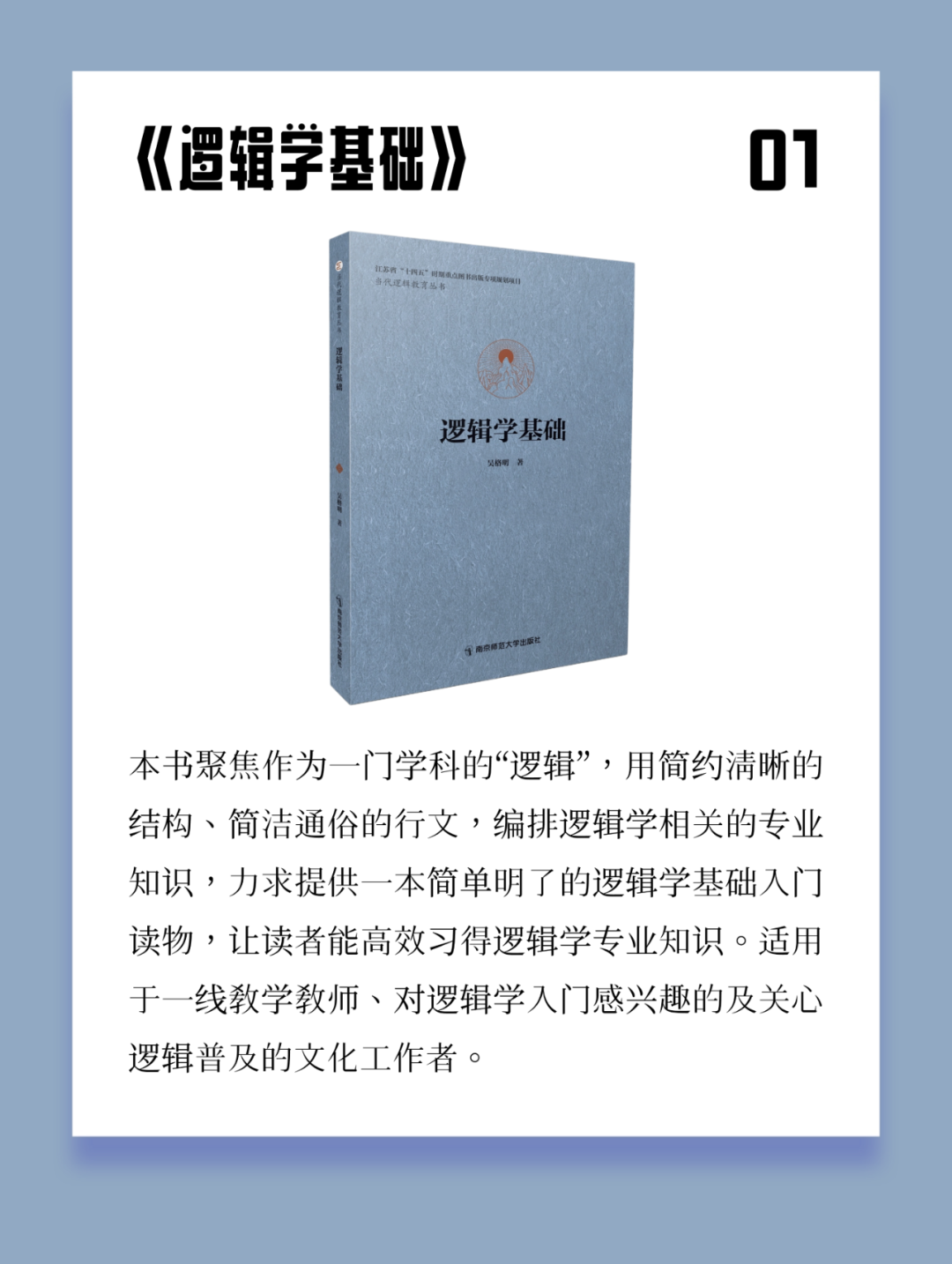 在这个信息纷繁复杂的时代,清晰、理性的思考能力显得尤为重要。江南大学教授、中国逻辑学会逻辑教育专业委员会主任吴格明的新书《逻辑与批判性思维》,正是为培养这种核心素养而著,这也是他在南京师范大学出版社出版的“当代逻辑教育丛书”系列中的第四部作品。