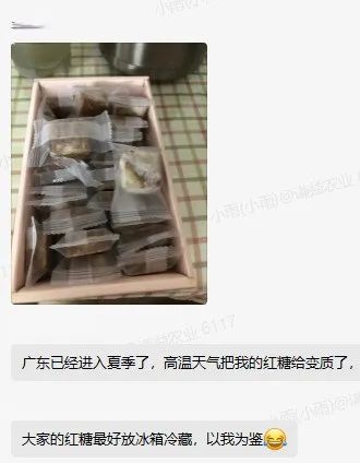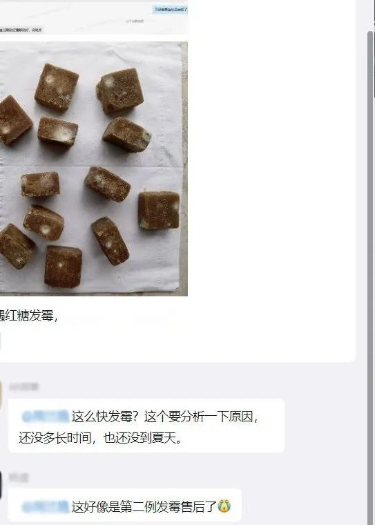 可没成想,从五月份开始,陆续收到农友的反馈,红糖中有个别发霉的情况。