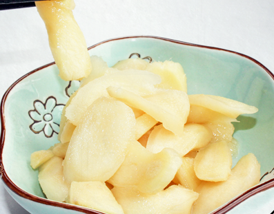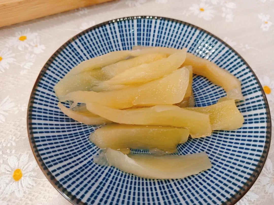 前段时间吃饭,老妈端了一小碟糖醋姜,它不像其他的姜那般辣的呛喉,酸、甜、脆、嫩,像吃小菜一样爽口!