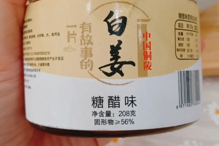 一罐铜陵白姜208g,2罐只要49.9元,初次尝试可以糖醋味、酱汁味两个口味搭配着来。