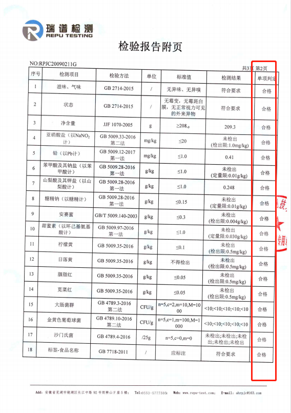 公司生产每一批次产品都送往铜陵市食品卫生监督部门抽样检测,检测合格后才投放市场销售,产品安全,咱们吃着更放心!