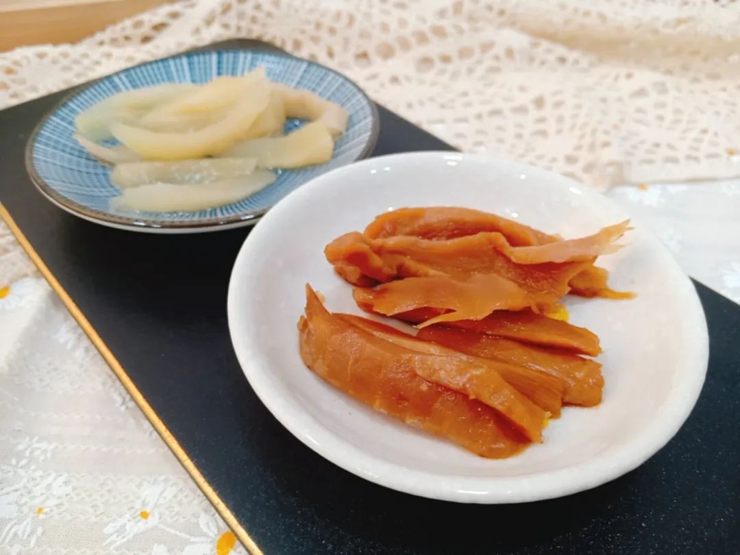 它有糖醋、酱汁两种口味,如果你喜欢咸口,强烈推荐你试一试酱汁味的,和小时候妈妈腌的酱菜一个味里面没有额外加糖,就连糖尿病人也能放心吃姜。