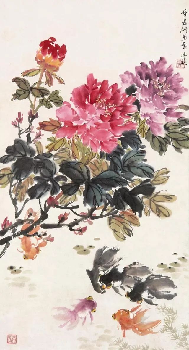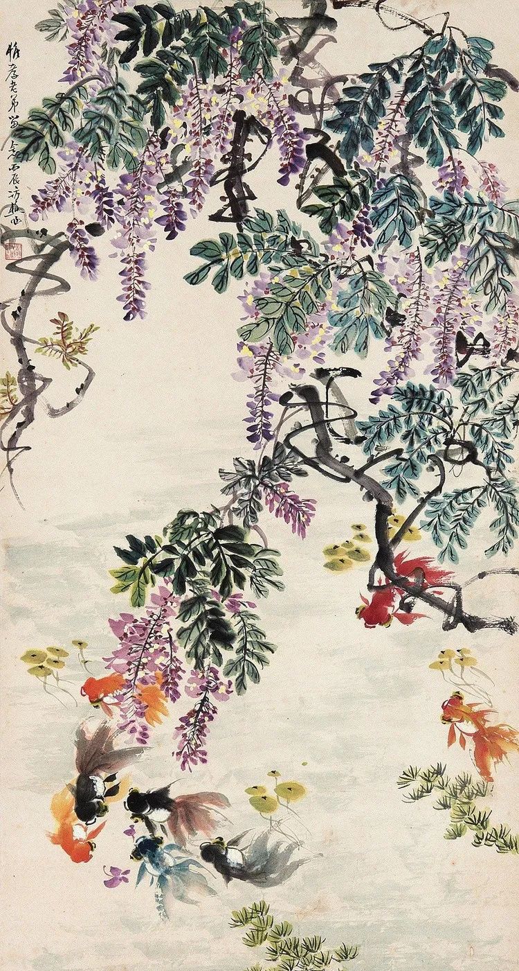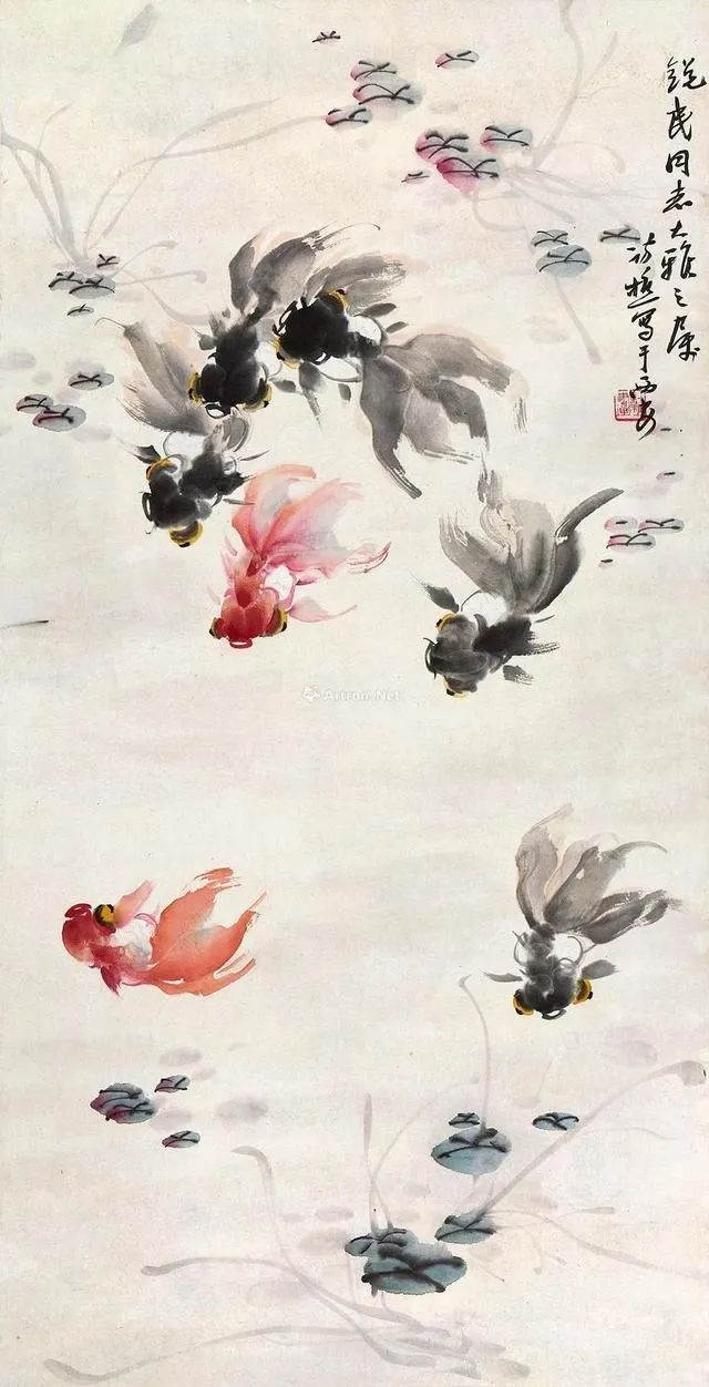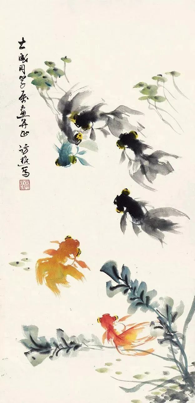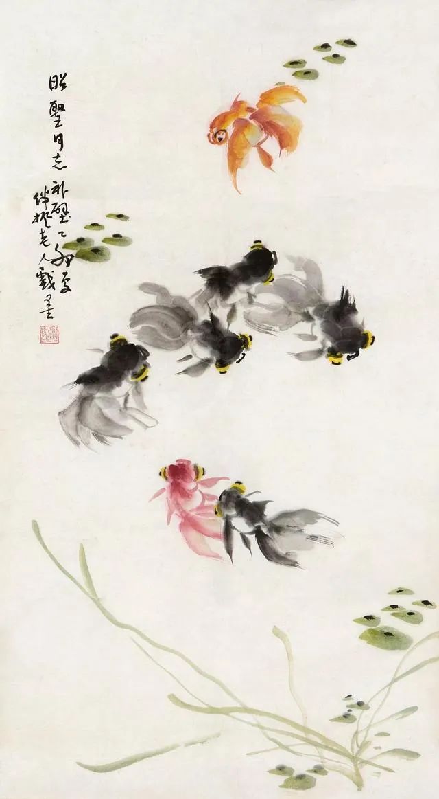 他笔下的花鸟画形神兼备,生动自然,尤以写意花鸟、鱼虫而著称。他的作品构思精巧,清新雅致,讲究笔墨情趣。善以色墨结合之法描绘花鸟世界的丰富多彩与勃然生机,色不碍墨,墨不碍色,使画面既有对比,又见和谐,韵味十足。叶老出生在书香世家,做过县长,但因厌烦官场拂袖而去,周游各地卖画为生。早年师从徐青藤、陈白阳、恽南田、新罗山人等,中年后受任伯年、吴昌硕、张书旗影响,水粉机融,笔默成趣,自成一家。他主张在传统的基础上要重视写生。认为“作画太像失神,不像失真。作画需形神兼备,笔墨生动,雅俗共赏,尽量使各界人土都能接受。”因此,他善于描绘花鸟世界的丰富多彩与活泼生气,其笔下的柳树、柿子、鹦鹉、八哥等形神兼备,生动自然,又表现了画家自己的心灵感受与动人想象,令人流连忘返。叶老画牡丹,含露欲放,楚楚动人。且构图的千姿百态、婀娜迷人;色彩的清新秀丽、光彩摄人。叶老画金鱼最为得意,其形似神俏、栩栩如生,天然成趣。三五成群的金鱼,或聚或散,或上浮、或回泳,或游于水藻间,或追逐回旋嬉戏,生动的再现了赏鱼之乐。他笔法生动洒脱,在色墨结合的基础上,以色助墨、以墨衬色,巧用色彩,以求整体色彩对比协调,为画面增添韵律,十分赏心悦目。