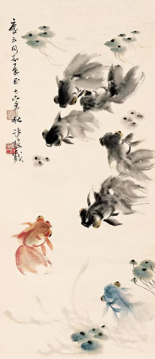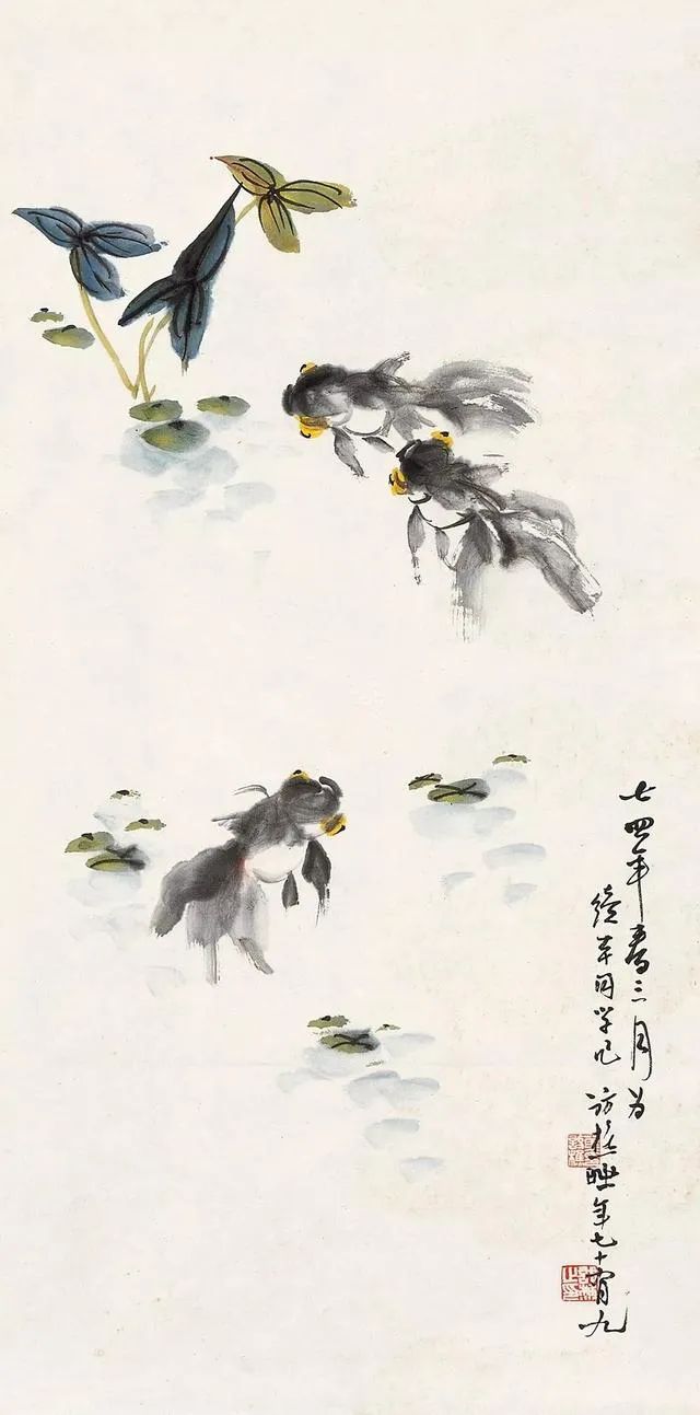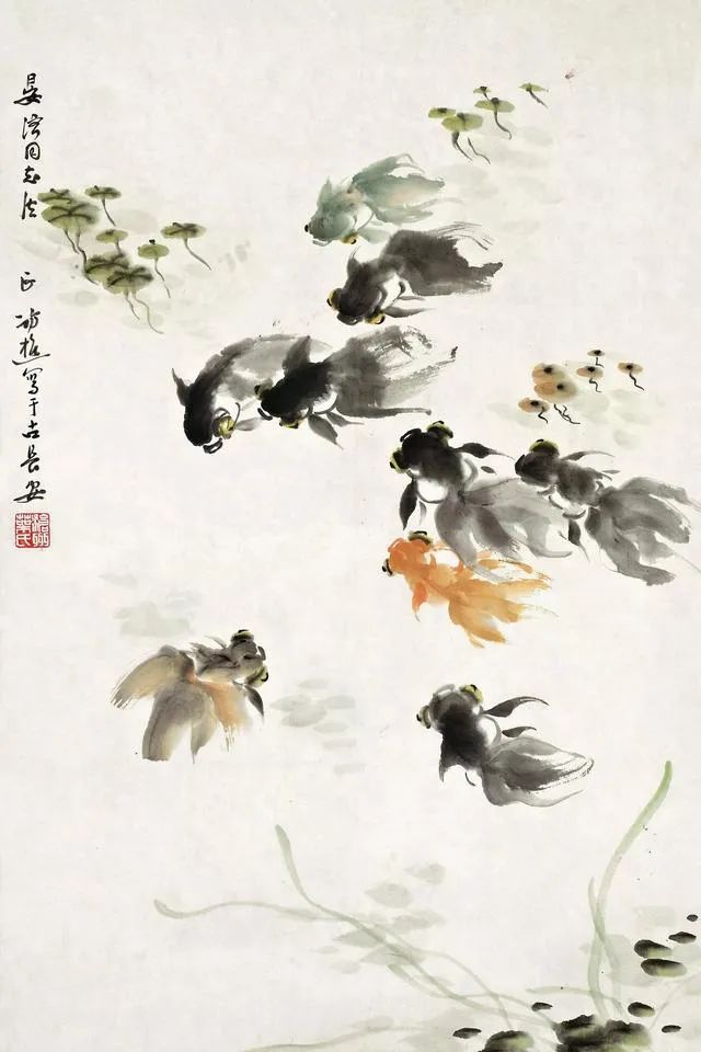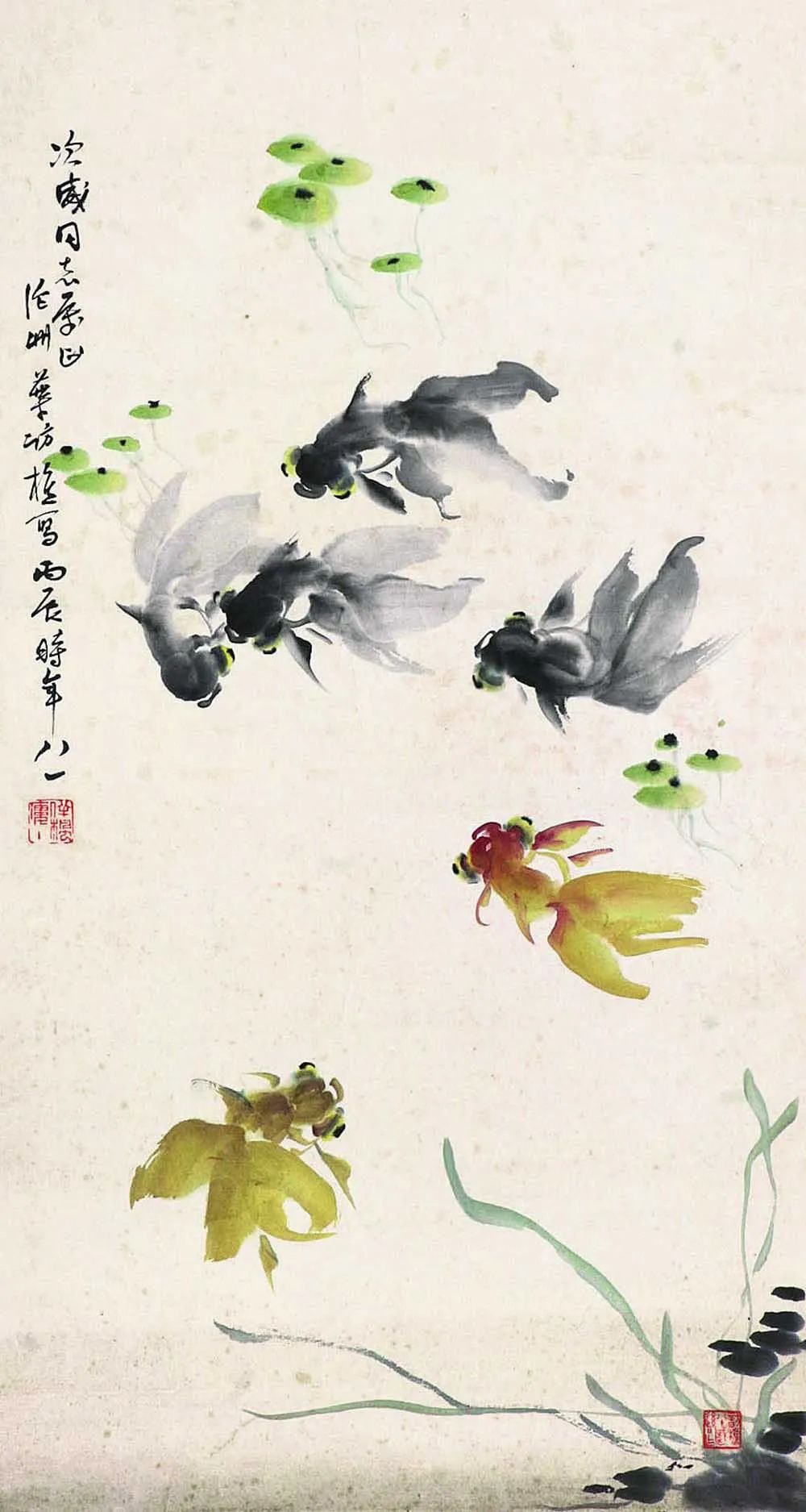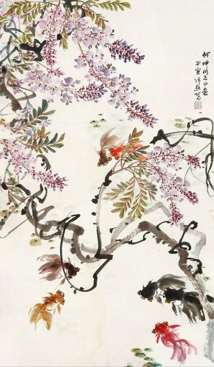 他笔下的花鸟画形神兼备,生动自然,尤以写意花鸟、鱼虫而著称。他的作品构思精巧,清新雅致,讲究笔墨情趣。善以色墨结合之法描绘花鸟世界的丰富多彩与勃然生机,色不碍墨,墨不碍色,使画面既有对比,又见和谐,韵味十足。叶老出生在书香世家,做过县长,但因厌烦官场拂袖而去,周游各地卖画为生。早年师从徐青藤、陈白阳、恽南田、新罗山人等,中年后受任伯年、吴昌硕、张书旗影响,水粉机融,笔默成趣,自成一家。他主张在传统的基础上要重视写生。认为“作画太像失神,不像失真。作画需形神兼备,笔墨生动,雅俗共赏,尽量使各界人土都能接受。”因此,他善于描绘花鸟世界的丰富多彩与活泼生气,其笔下的柳树、柿子、鹦鹉、八哥等形神兼备,生动自然,又表现了画家自己的心灵感受与动人想象,令人流连忘返。叶老画牡丹,含露欲放,楚楚动人。且构图的千姿百态、婀娜迷人;色彩的清新秀丽、光彩摄人。叶老画金鱼最为得意,其形似神俏、栩栩如生,天然成趣。三五成群的金鱼,或聚或散,或上浮、或回泳,或游于水藻间,或追逐回旋嬉戏,生动的再现了赏鱼之乐。他笔法生动洒脱,在色墨结合的基础上,以色助墨、以墨衬色,巧用色彩,以求整体色彩对比协调,为画面增添韵律,十分赏心悦目。