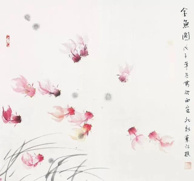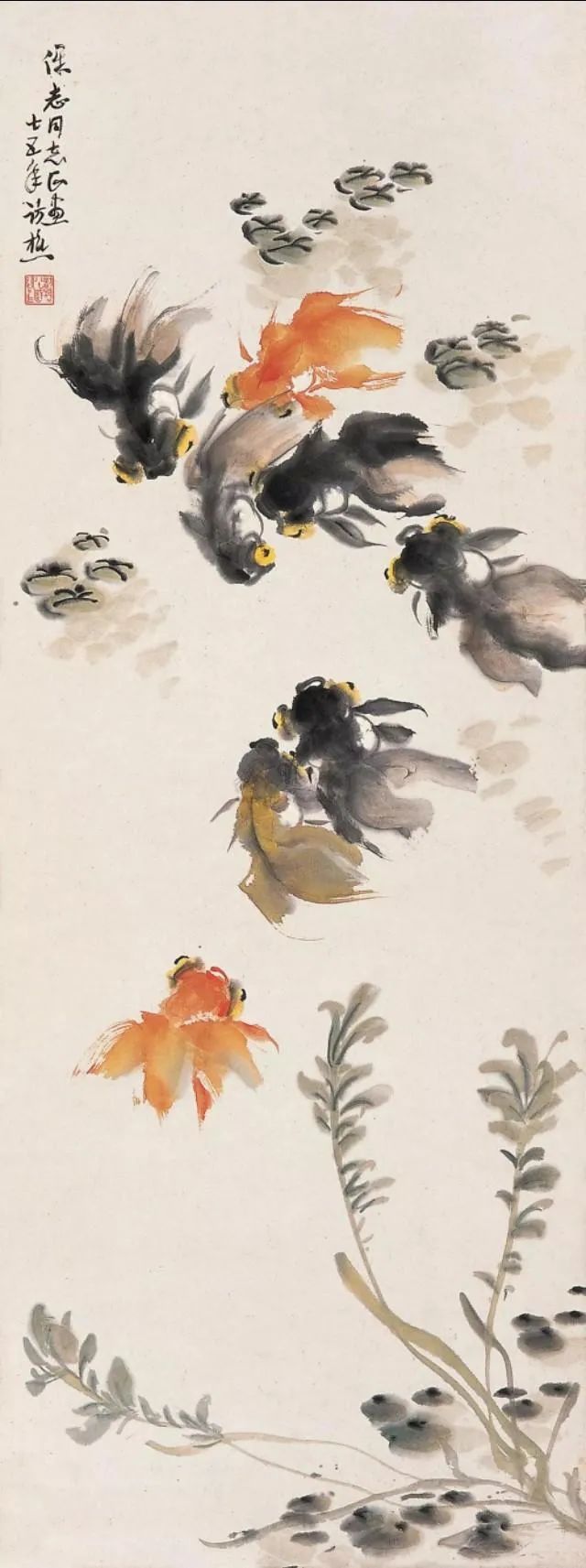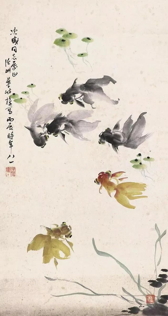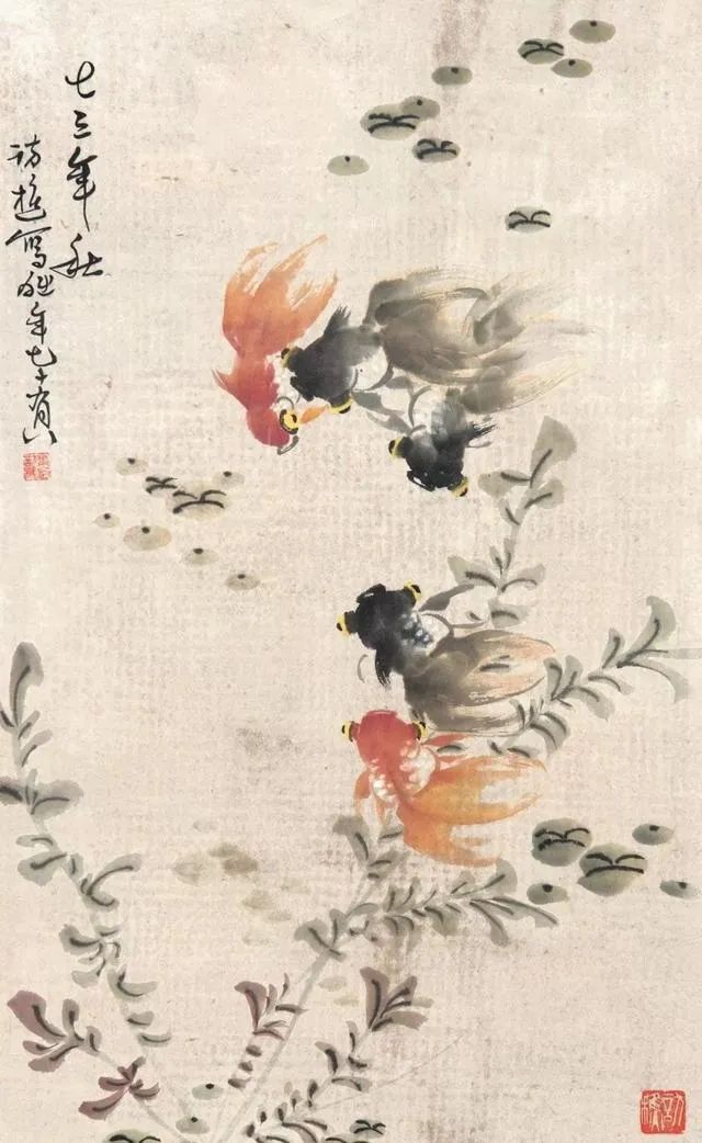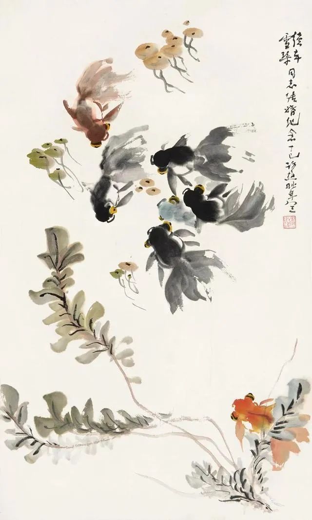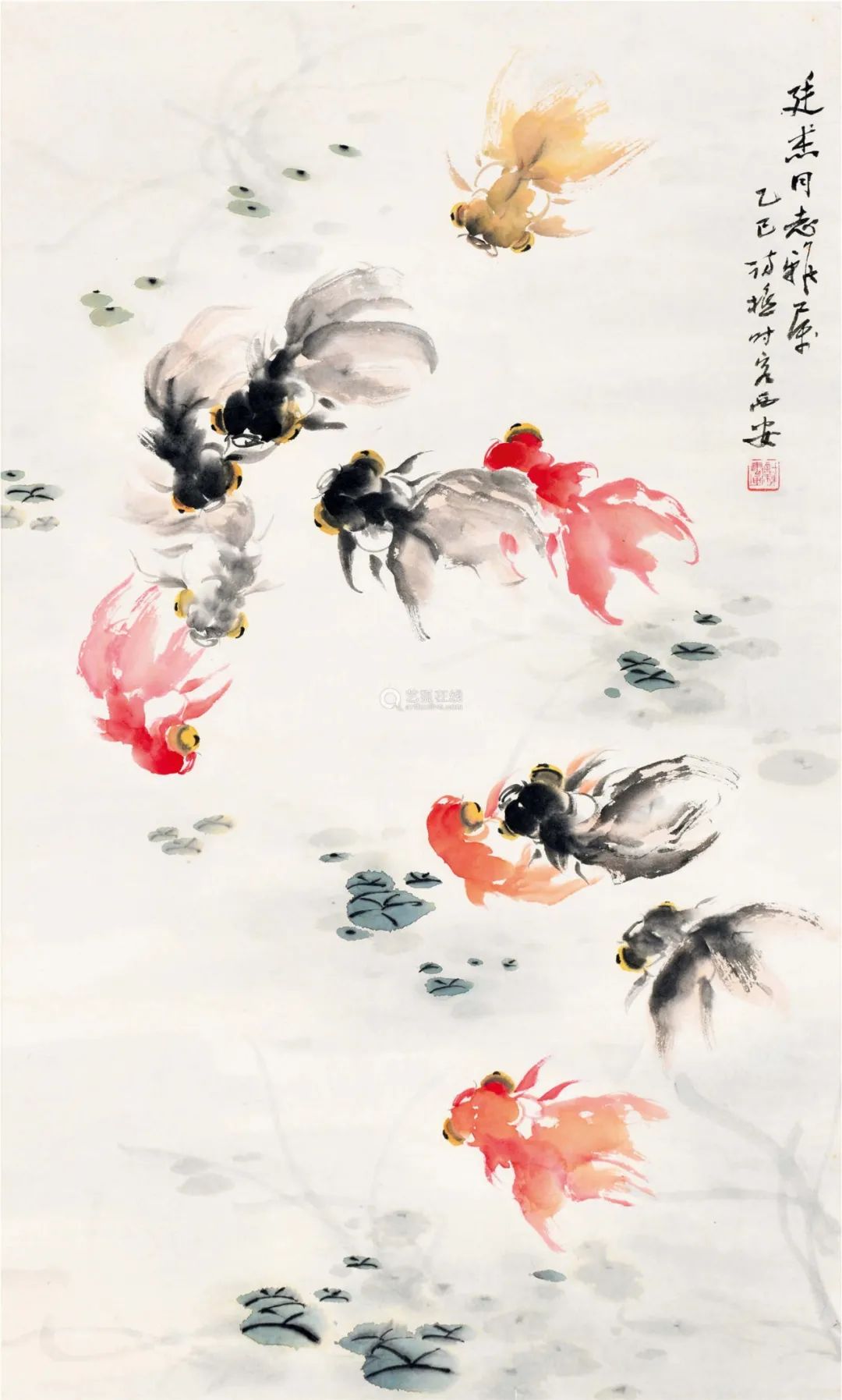 他笔下的花鸟画形神兼备,生动自然,尤以写意花鸟、鱼虫而著称。他的作品构思精巧,清新雅致,讲究笔墨情趣。善以色墨结合之法描绘花鸟世界的丰富多彩与勃然生机,色不碍墨,墨不碍色,使画面既有对比,又见和谐,韵味十足。叶老出生在书香世家,做过县长,但因厌烦官场拂袖而去,周游各地卖画为生。早年师从徐青藤、陈白阳、恽南田、新罗山人等,中年后受任伯年、吴昌硕、张书旗影响,水粉机融,笔默成趣,自成一家。他主张在传统的基础上要重视写生。认为“作画太像失神,不像失真。作画需形神兼备,笔墨生动,雅俗共赏,尽量使各界人土都能接受。”因此,他善于描绘花鸟世界的丰富多彩与活泼生气,其笔下的柳树、柿子、鹦鹉、八哥等形神兼备,生动自然,又表现了画家自己的心灵感受与动人想象,令人流连忘返。叶老画牡丹,含露欲放,楚楚动人。且构图的千姿百态、婀娜迷人;色彩的清新秀丽、光彩摄人。叶老画金鱼最为得意,其形似神俏、栩栩如生,天然成趣。三五成群的金鱼,或聚或散,或上浮、或回泳,或游于水藻间,或追逐回旋嬉戏,生动的再现了赏鱼之乐。他笔法生动洒脱,在色墨结合的基础上,以色助墨、以墨衬色,巧用色彩,以求整体色彩对比协调,为画面增添韵律,十分赏心悦目。