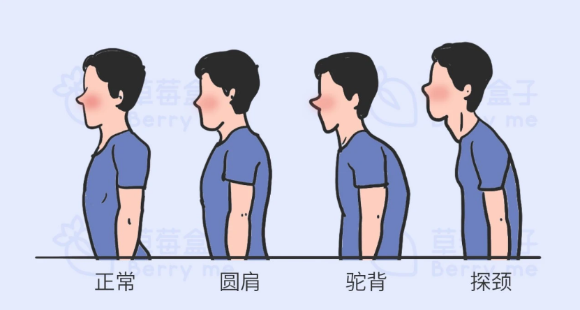 每个人的肩膀都不太一样,比如圆肩、驼背、探颈可能是上交叉综合征。