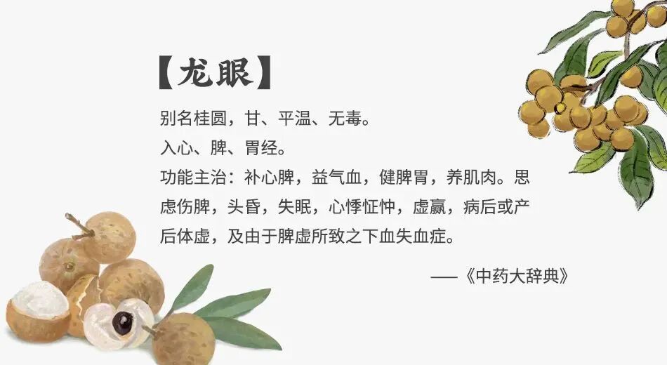 其实是因为莲藕、雪梨、百合这些,基本都是偏凉润的。今年大湿年,湿气过重,现在更是已进深秋,阳气渐藏,大家的脾胃都比较虚寒,并不适合这类凉润的食物。这时候我们就可以选择温润的龙眼,是补益心血的好东西,它能入心脾两经,可以让我们的气血不耗损那么快,尤其适合带娃心力交瘁的妈妈们。龙眼,被视为秋冬滋补佳品,自古就有“北人参,南桂圆”的说法。以前只觉得好吃,但不知道为何要这么吃,后来学了中 医才知道:龙眼秉秋气而生,圆圆的小果子吸收足了节气里的精华,不仅美味多汁,还是补益心脾的“果中圣品”,秋天吃正合适。《雷公炮制药性解》里说它:主补血气,养肌肉,益虚气,美颜色,除健忘,治怔忡,增智慧,明耳目,久服延年。[2]