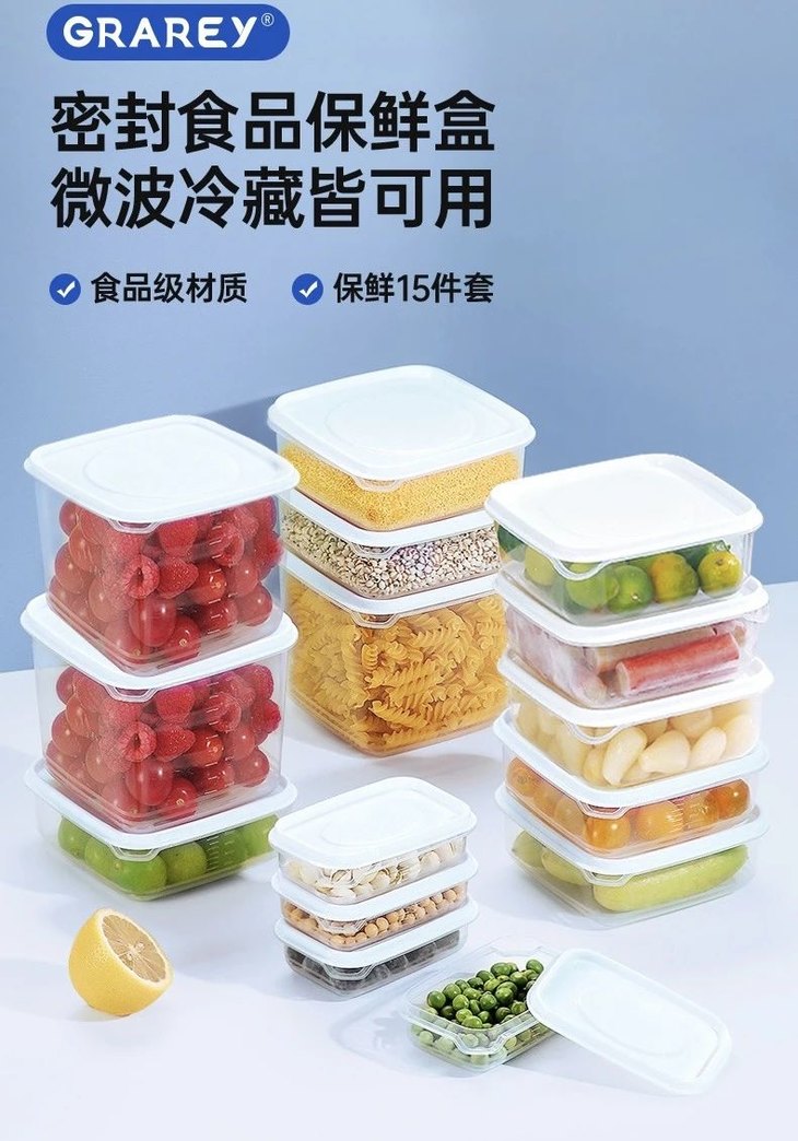29.9元🉐15件套,轻松告别保鲜烦恼!【GRAREY格瑞亚-食品保鲜盒15件套】万物皆可装,分类储存一套搞定❗️