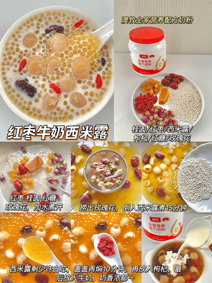 ✅今天做甜品汤用到的是这款澳牧全家营养配方奶粉(澳牧红胖子) 百分百新西兰进口奶源,含有乳铁蛋白和免疫球蛋营养敲全面,家里有老人小孩的都能一起喝。