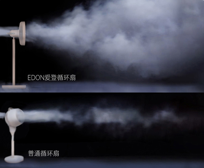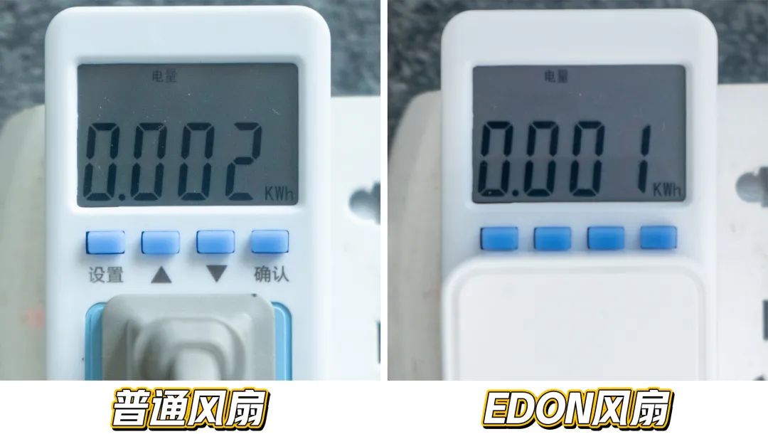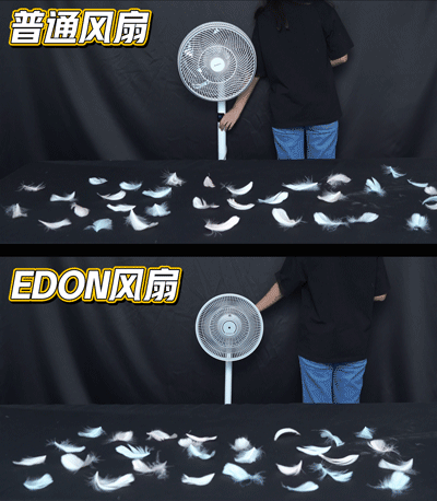 让普通风扇和EDON风扇一起吹桌上的羽毛。