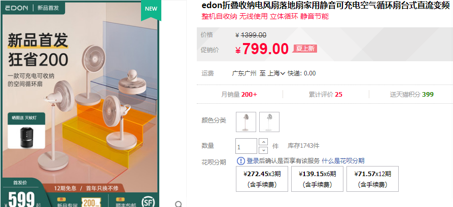 价格相当亲民,不到市面上空气循环扇的三分之一,