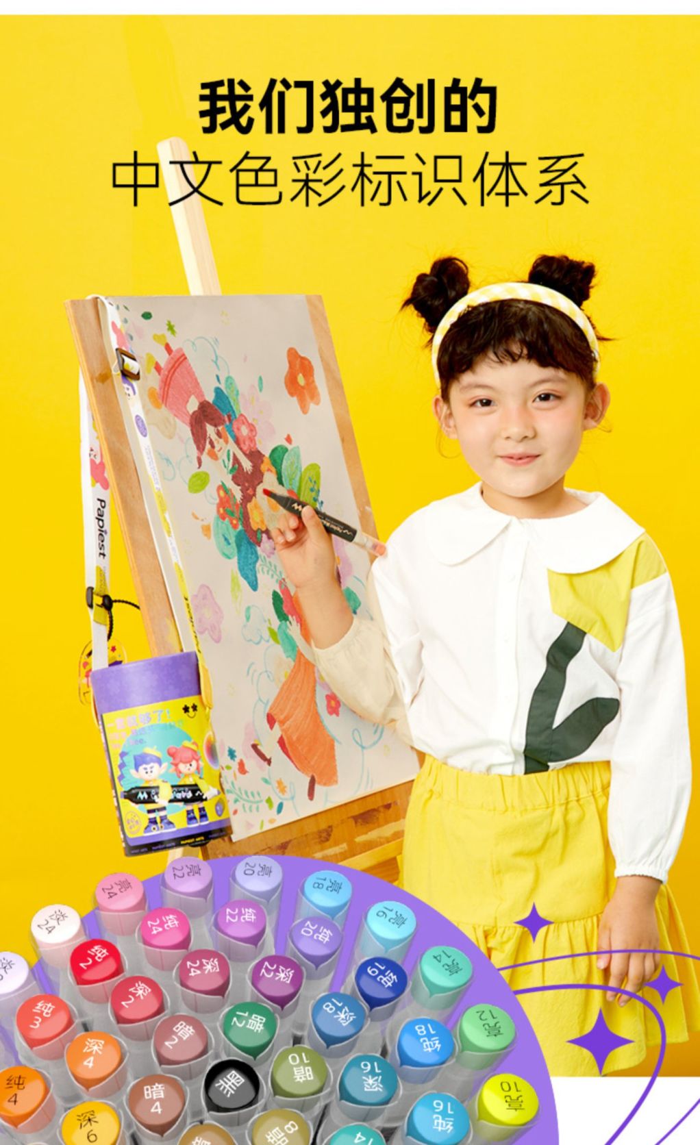 1/广博独创的中文色彩标识体系 结合一线美术老师经验 精选小朋友最喜爱的{淡/亮/纯/暗}五大色调