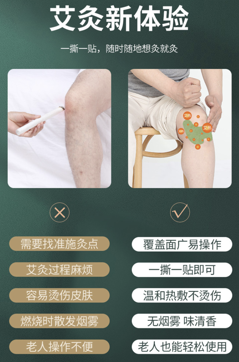 艾草,在我国民间一直被广泛使用的。这款膝盖贴提取了艾叶、桉叶、肉桂等植物成分,在微热的温度下持续呵护膝关节,就像给你的膝盖做了一次热敷。
