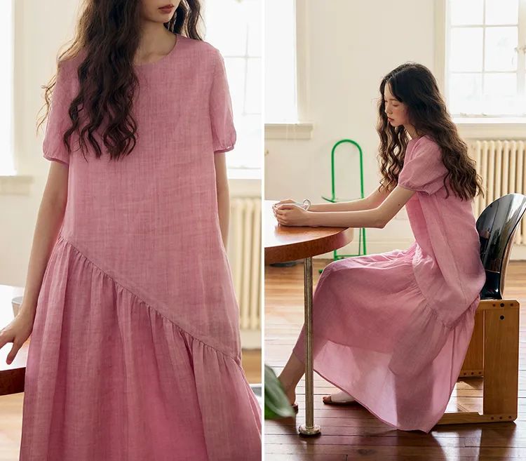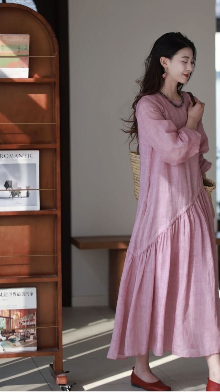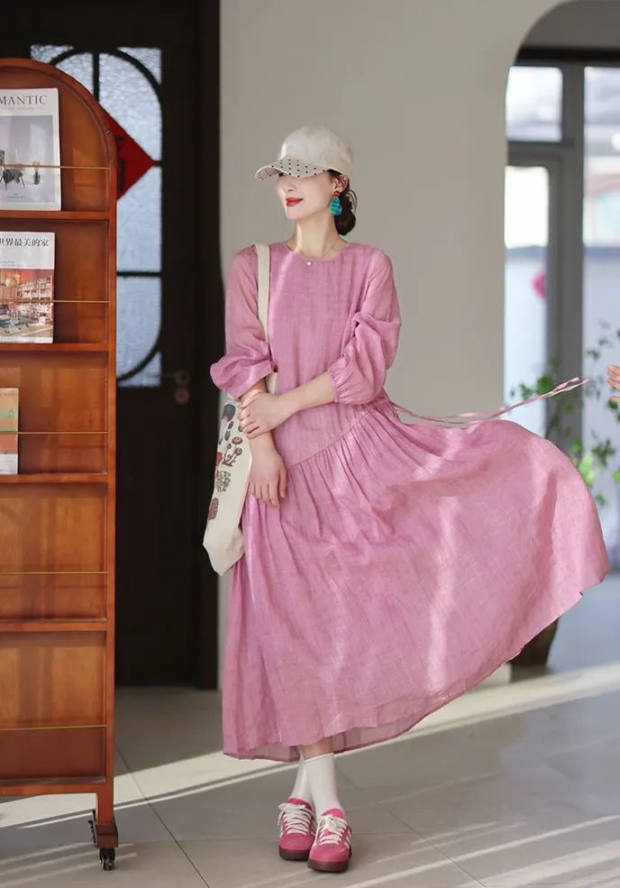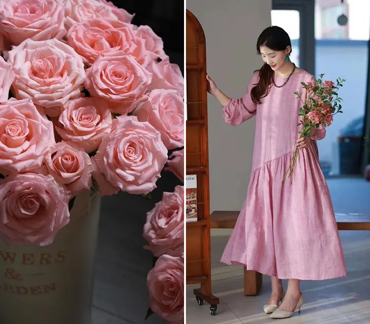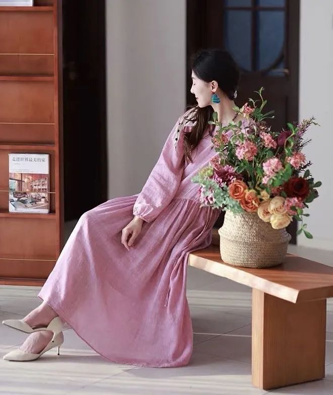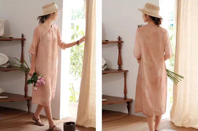 浅粉色的苎麻很是难得,这可是独家定制定染!宛如绽放粉玫瑰,温柔有诗意,尽显温婉气息。