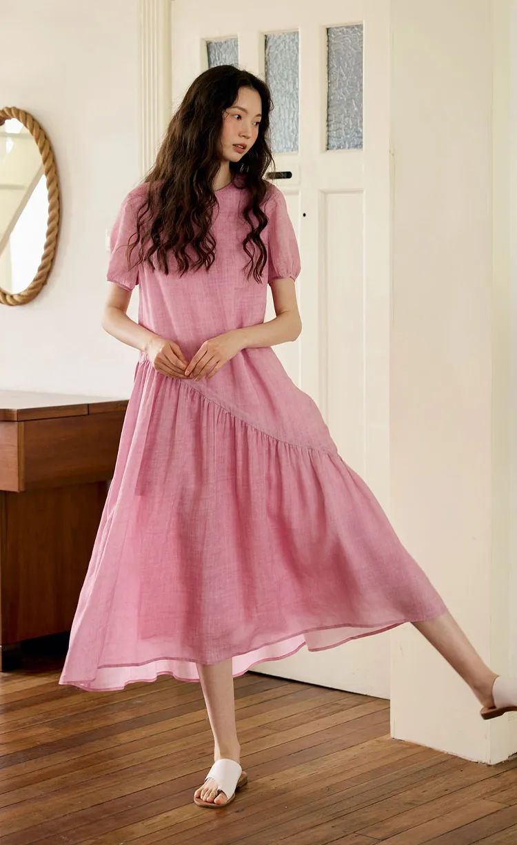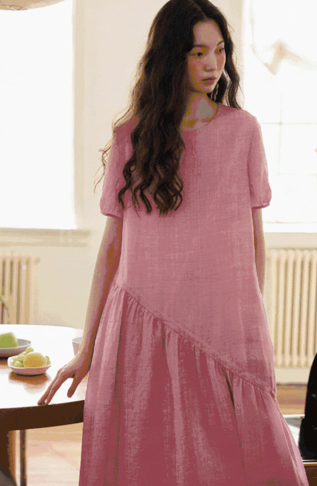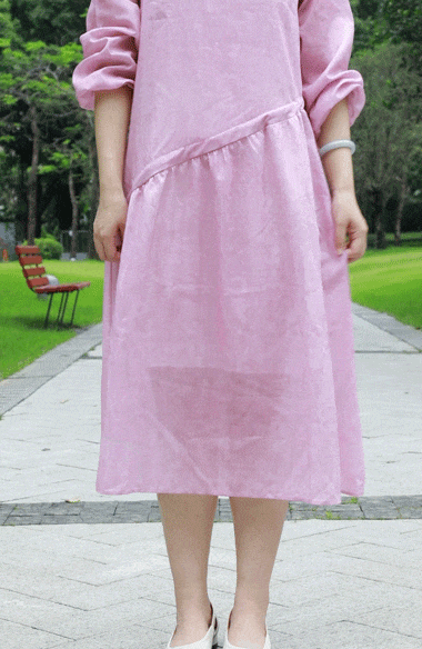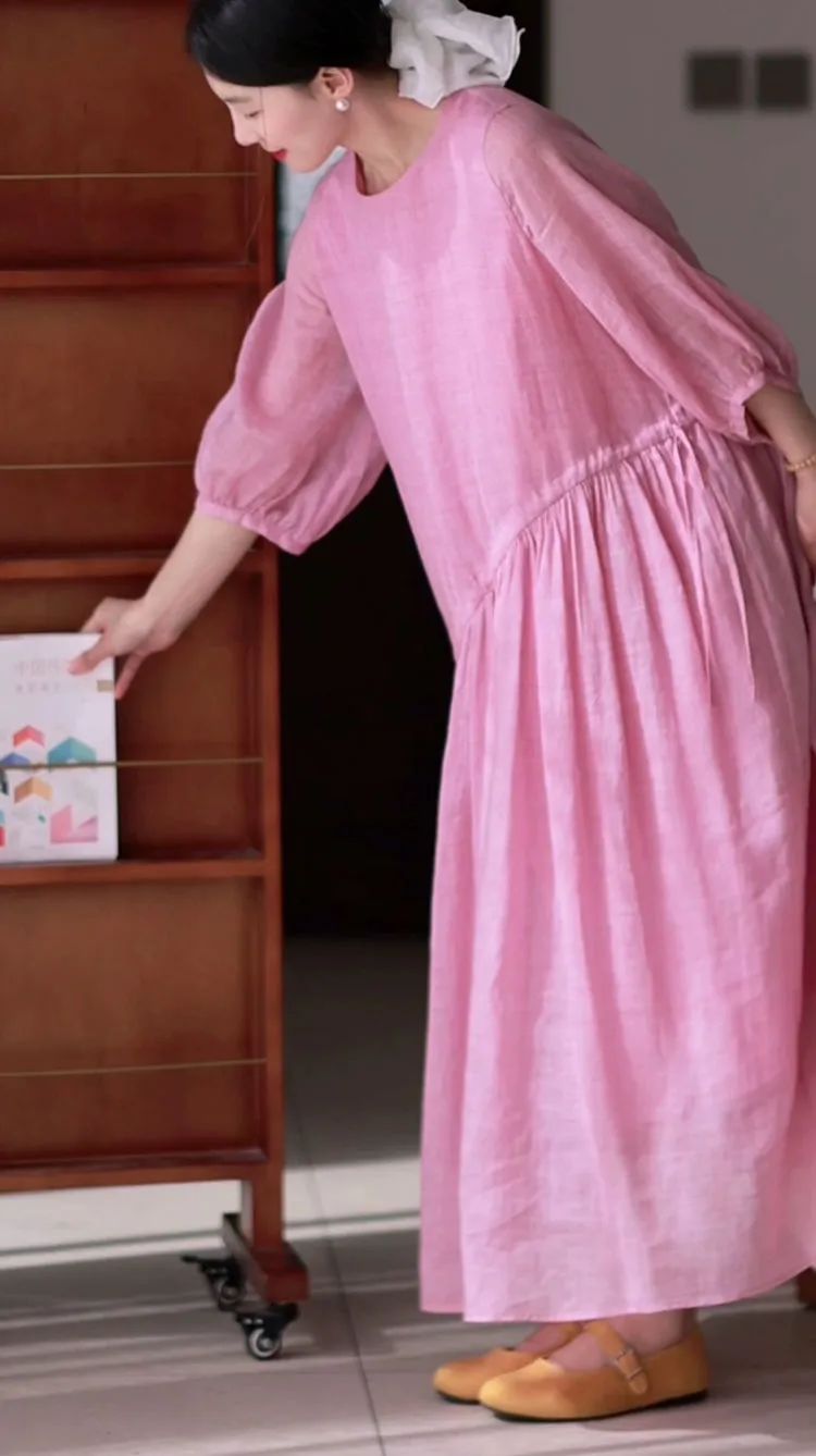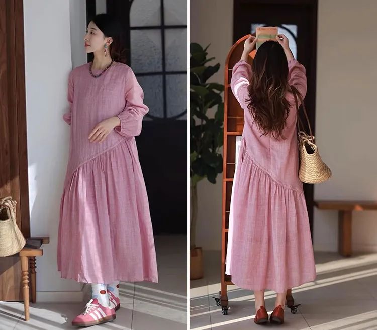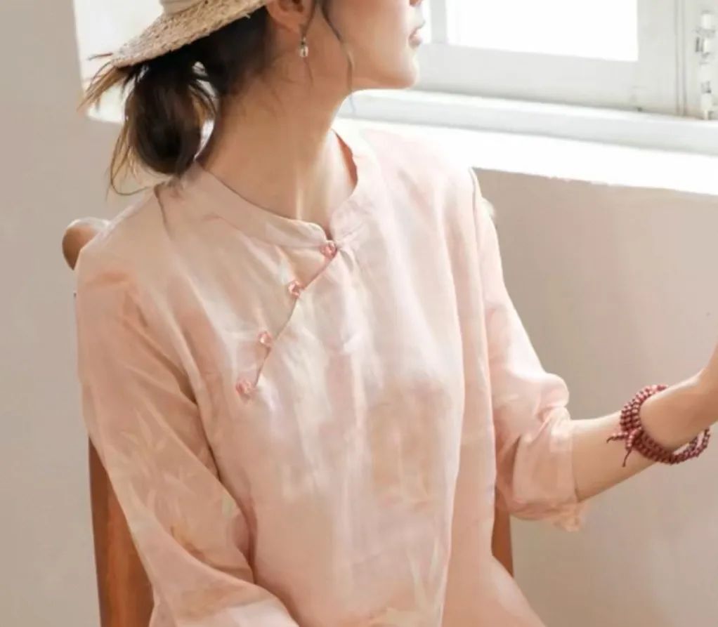 浅粉色的苎麻很是难得,这可是独家定制定染!宛如绽放粉玫瑰,温柔有诗意,尽显温婉气息。