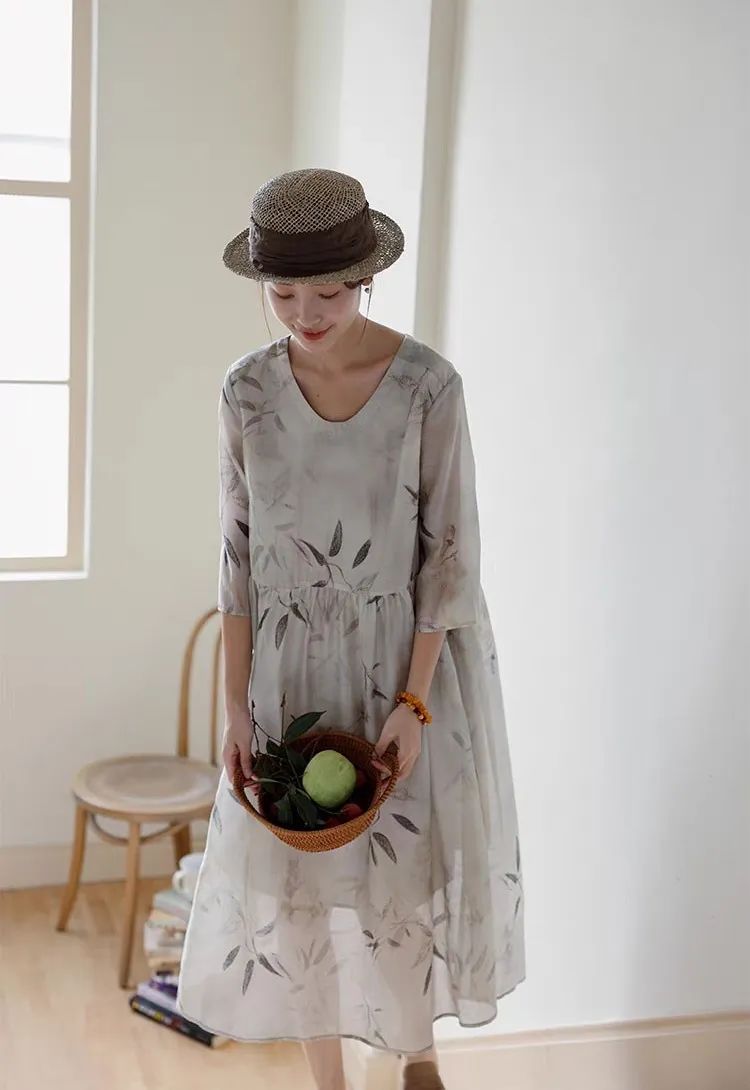 | 水墨染·竹叶印花苎麻连衣裙 |