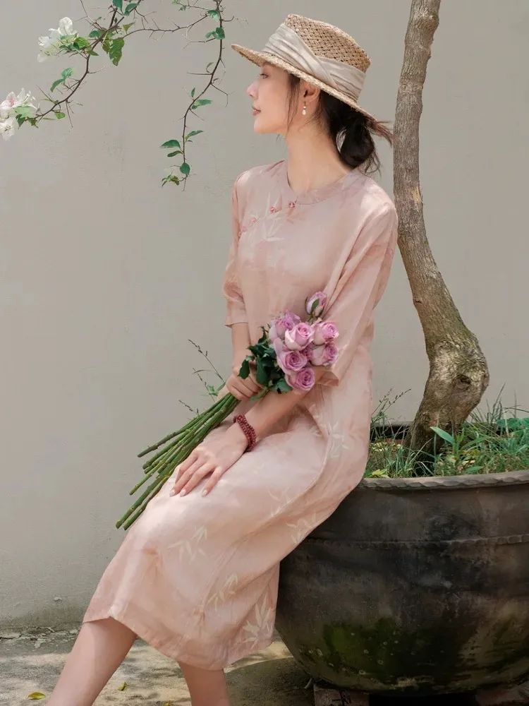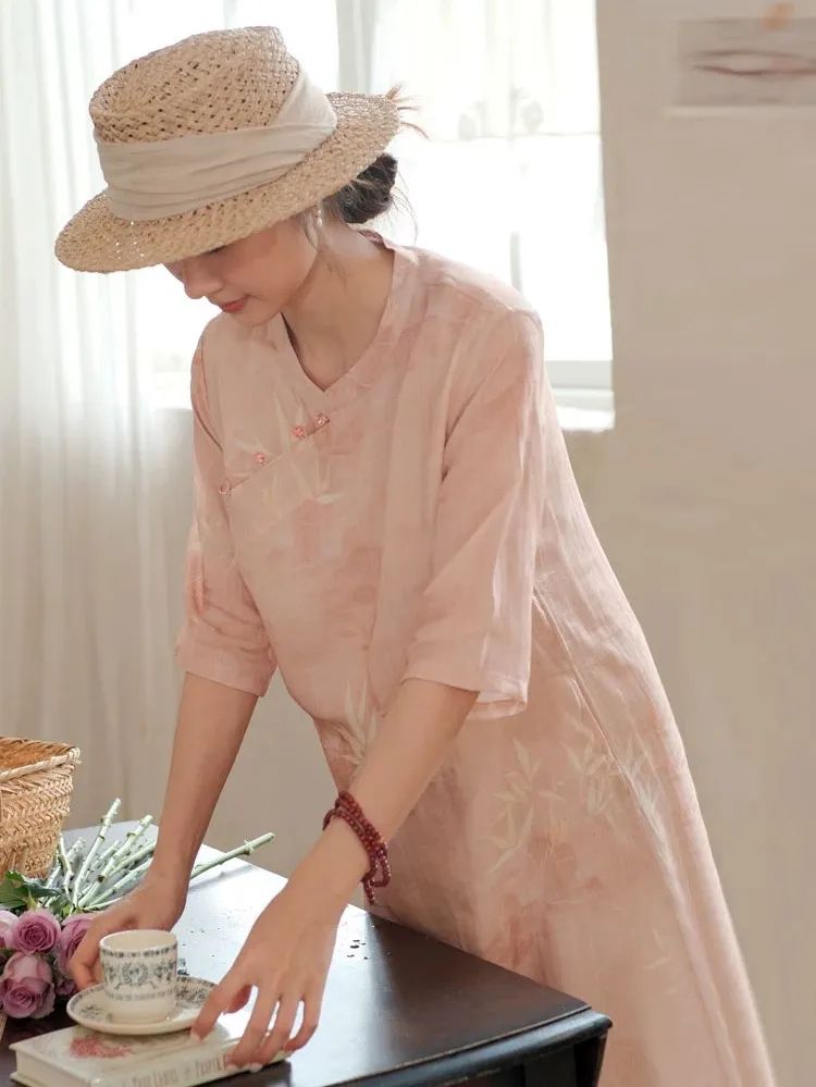 | 粉竹·新中式苎麻改良旗袍 |