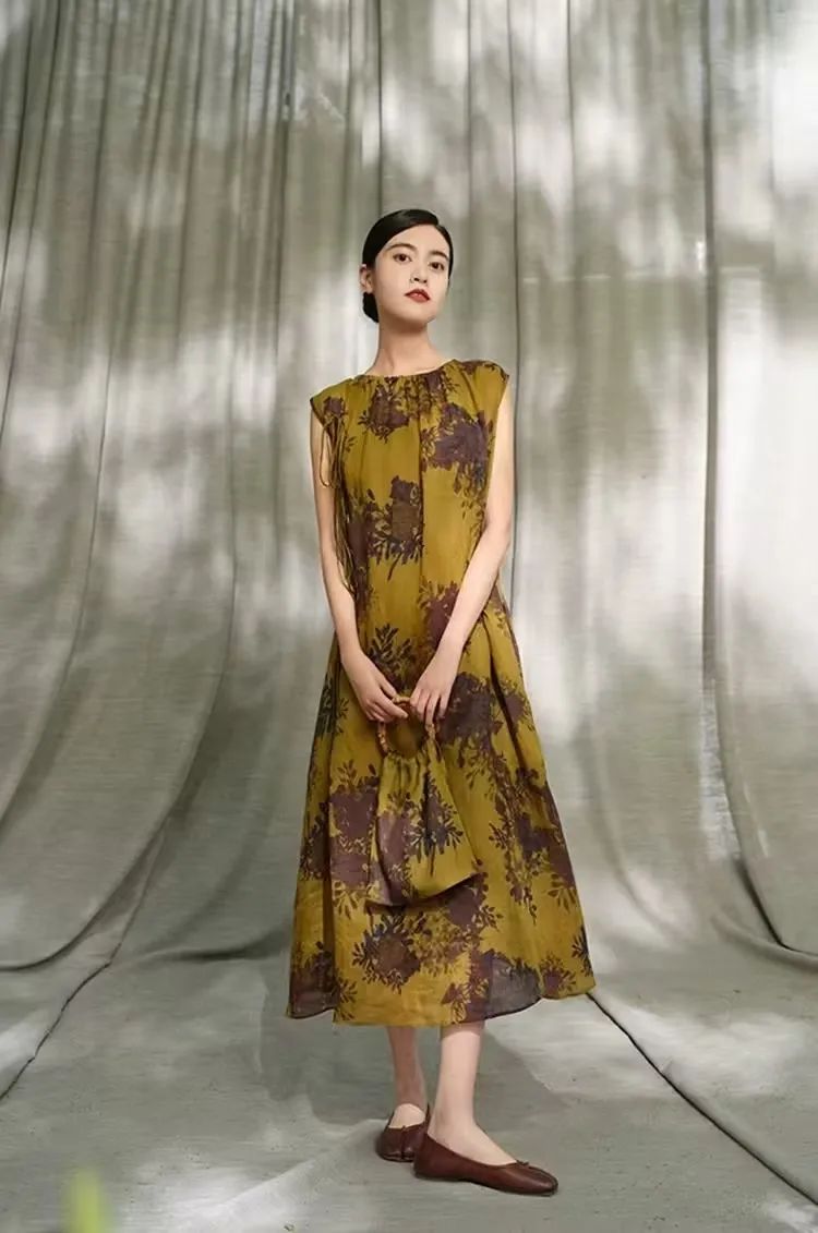 看似粗粝,抚之柔软的苎麻布,仿佛一缕来自山野的清风,完美与中国女性的东方气质相契合。