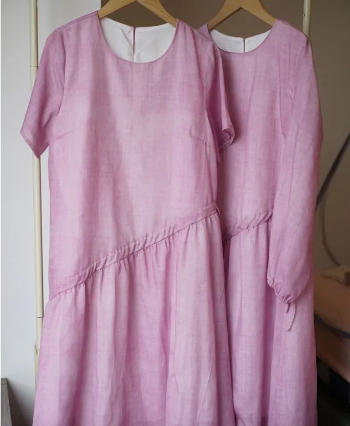 苎麻布植物印染的粉色很妙,粉色和白色交织成梦,细看有晕染的感觉,穿在身上秒变油画里走出的森系少女,妥妥的夏日衣橱C位!