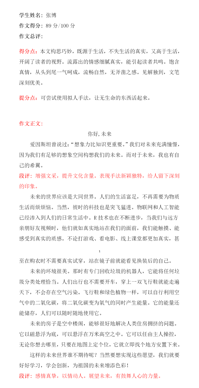 文如其人,纯真而博远,字里行间充满对生活的热爱,对未来的期待。你黑亮的大眼睛里装满了智慧,你宽广的胸怀洋溢着热情,你拥有永不退缩的克服困难的劲头,因为有了你,班集体才更加充满朝气。现在的你,就像一块璞玉,一旦被精心雕琢成器,定会焕发出灿烂的光辉,“须知少年凌云志,曾许人间第一流”,老师相信你,祝福你!赵梓涵!加油!
