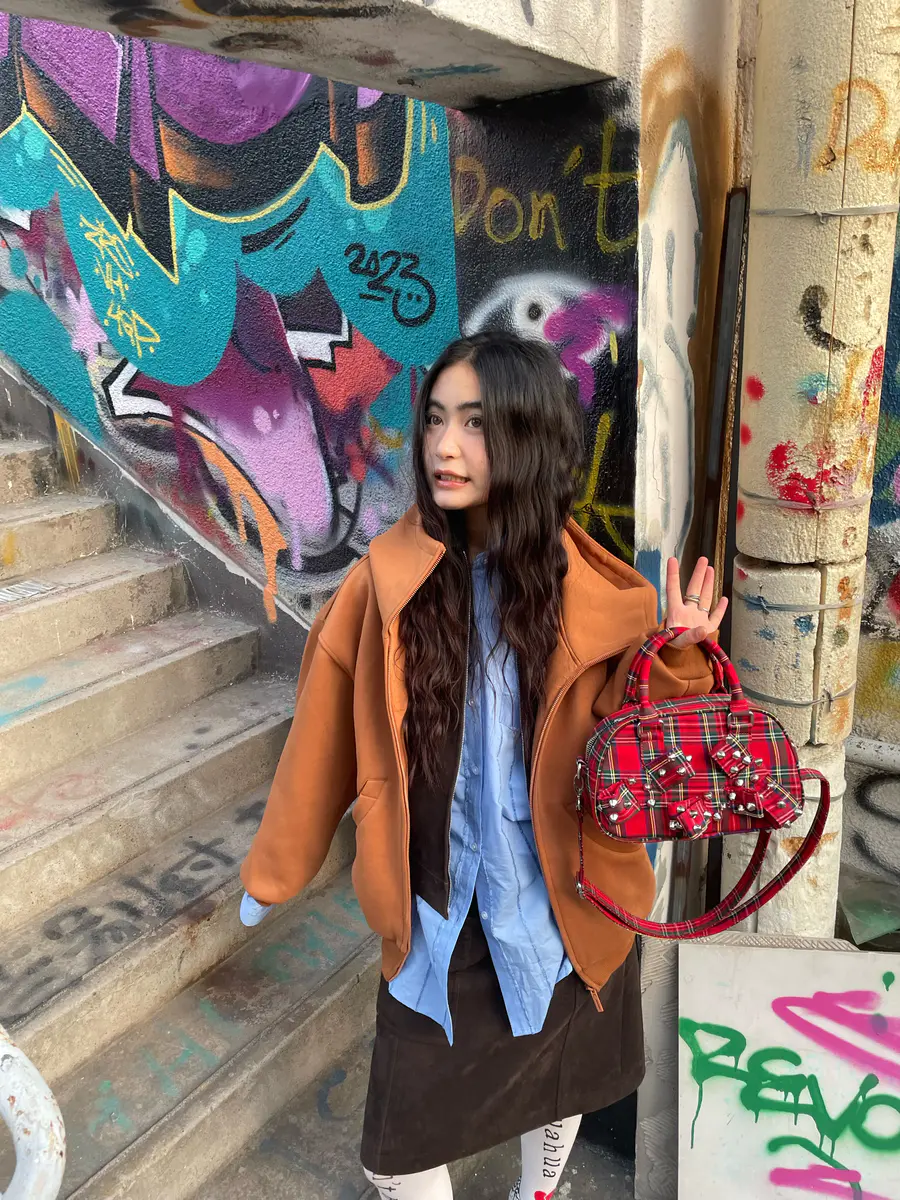 新品上身 | 冬日撞色Look,蓝色衬衫搭橘色卫衣超吸睛✨!