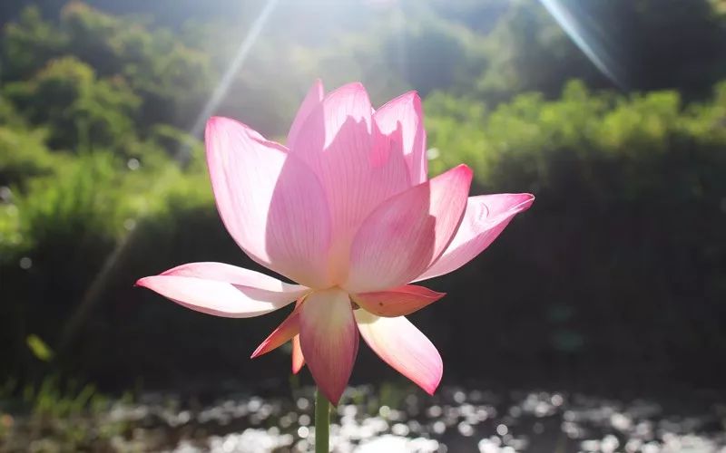 今年的荷花才是虚心谷的主角,满池的碧绿,莲池中这儿冒出一朵清新的荷花,那角落突然又冒出一朵。