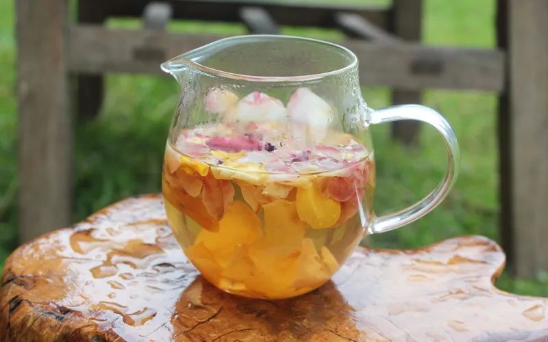 红、黄、粉玫瑰,稍加处理,就可以烹饪成美味的料理。玫瑰花茶,香气浓郁、滋味甘美,具有调理血气、养颜美容的功效,小二说了,只要来访虚心谷想喝花茶的游客们,定会亲自为您调制不一样的玫瑰花茶。