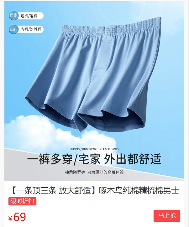 也比老大爷穿的大裤衩要短些,且更柔软。