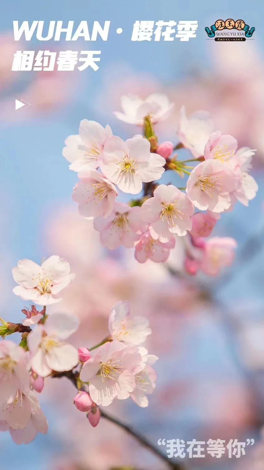 “此刻,武汉的樱花正陆续盛放,东湖磨山樱花园的五重塔下,10000多棵樱花树,酝酿一整年的浪漫。”