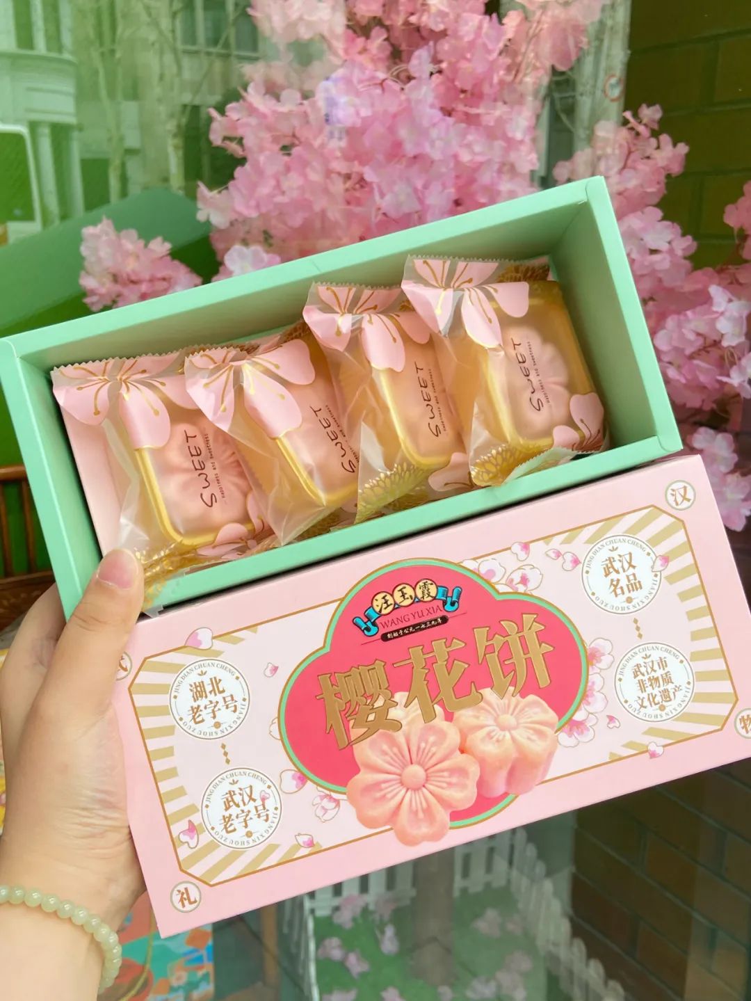 樱花饼,樱花味绿豆糕、樱花牛角酥,这些与樱花相得益彰的汉味美食,是你见证武汉春天的最佳氛围者,也是武汉礼物的最强组合。