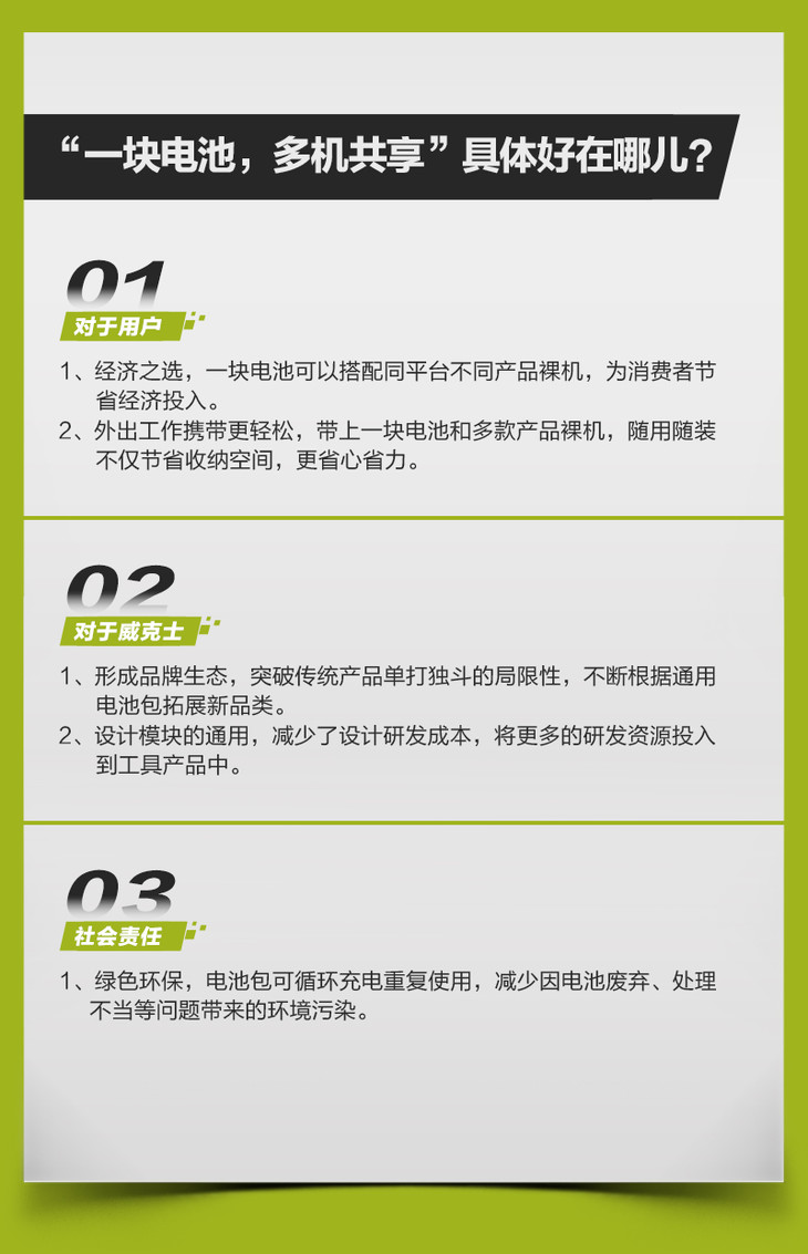 大家都知道威克士锂电平台“一块电池,多机共享”很Nice,那么具体好在哪儿呢?