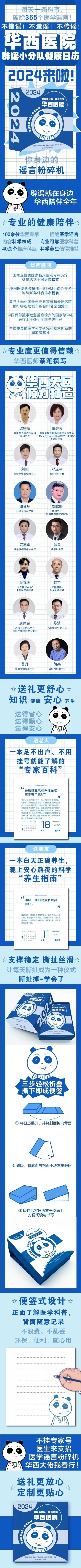 2024年华西健康日历出版啦!华西专家每天教你一个健康小知识!